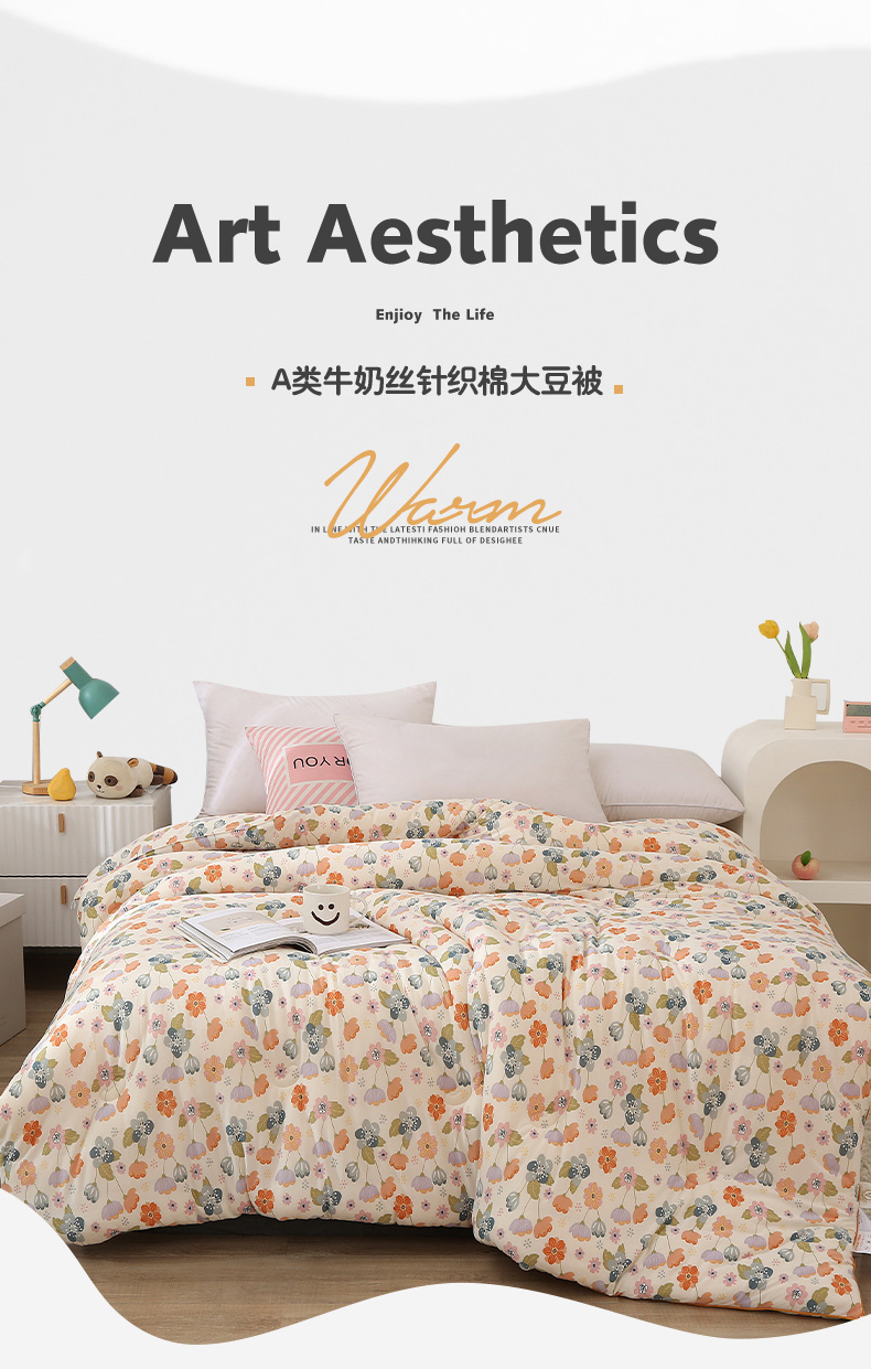 • 91家纺网 家纺一手货源 找家纺 薇玛仕 2025新款A类牛奶丝针织棉印花大豆被 花舞