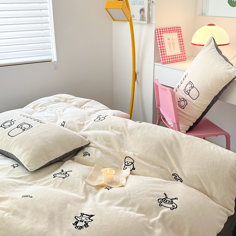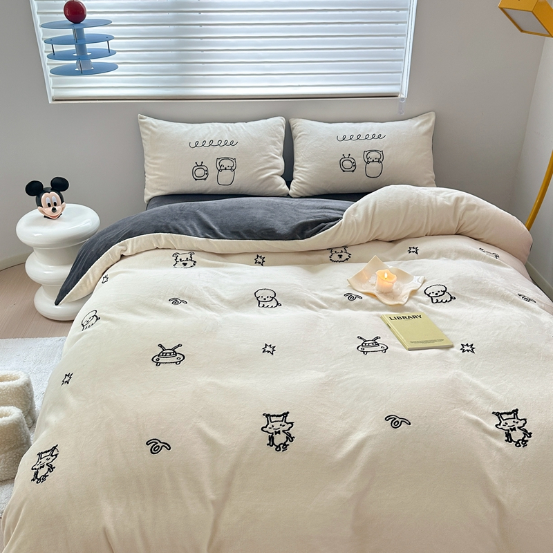 星期八 2023新款牛奶绒毛巾绣四件套 机器狗