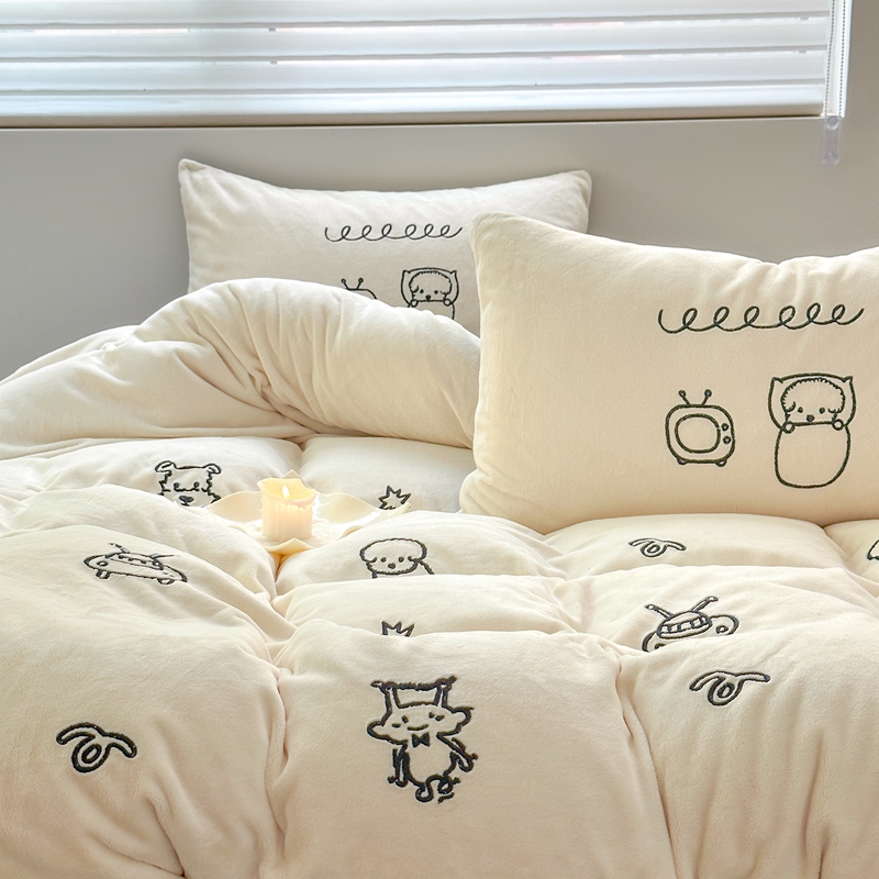 商品名称:星期八 2023新款牛奶绒毛巾绣四件套 机器狗