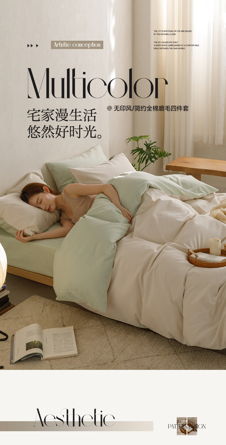 (总)卡巴伦家纺 2023新款纯棉磨毛无印风四件套