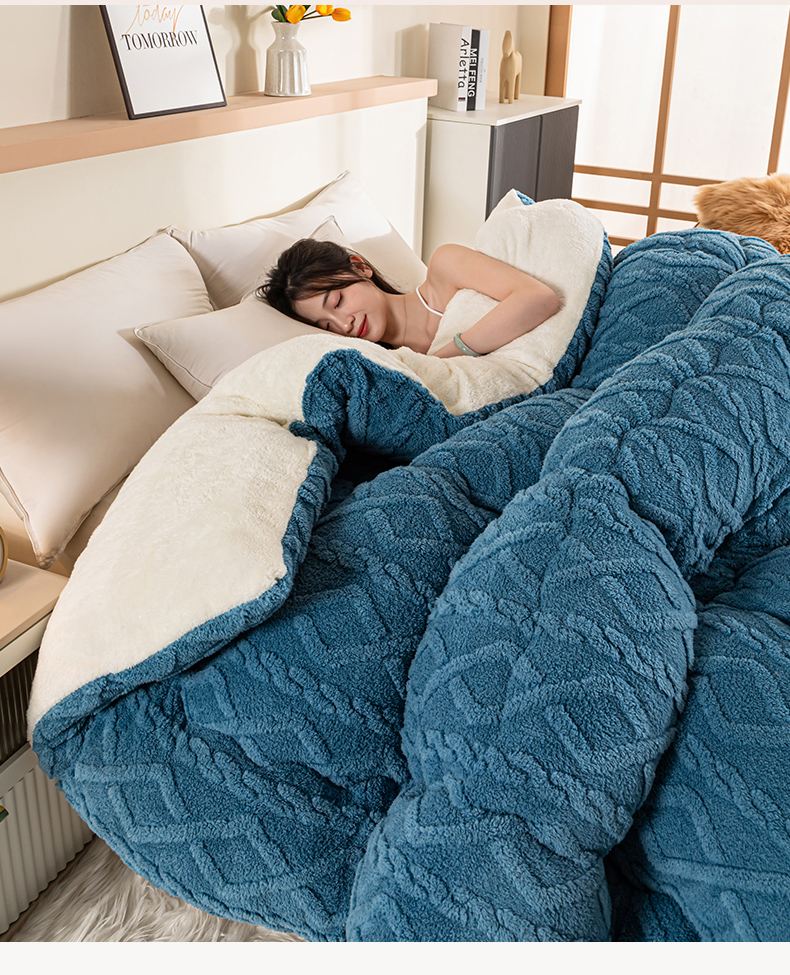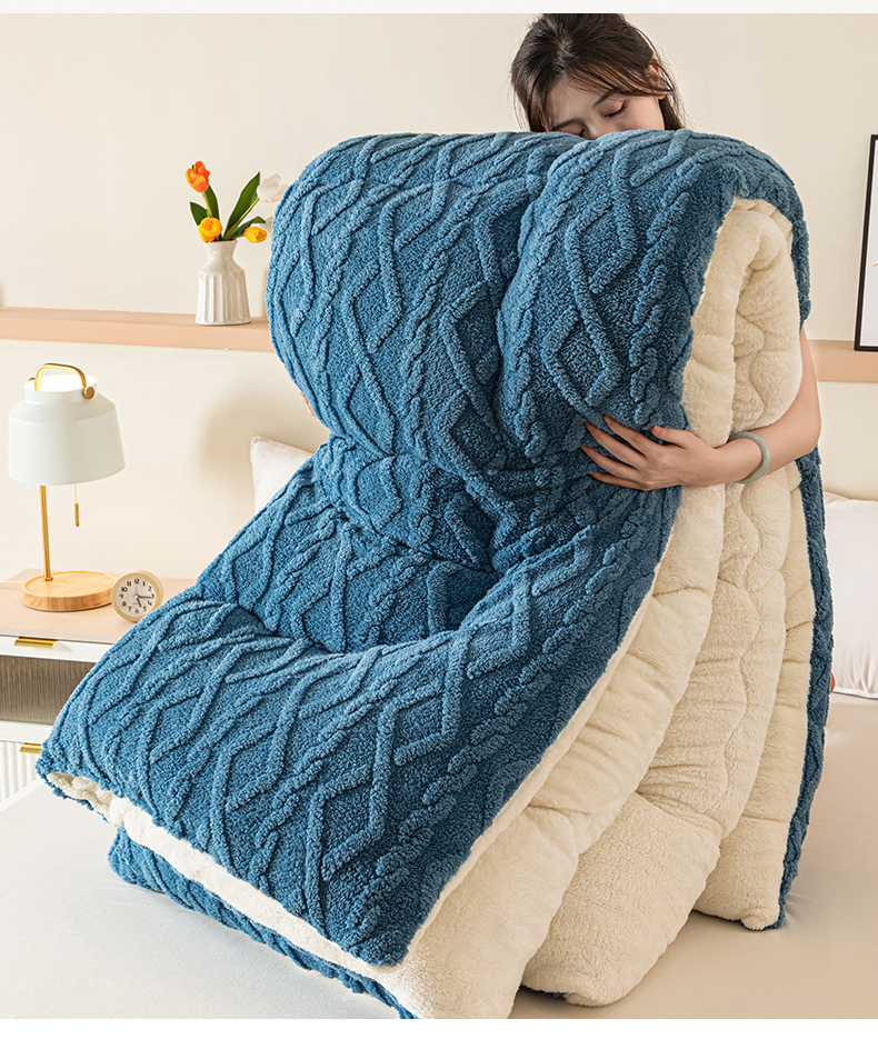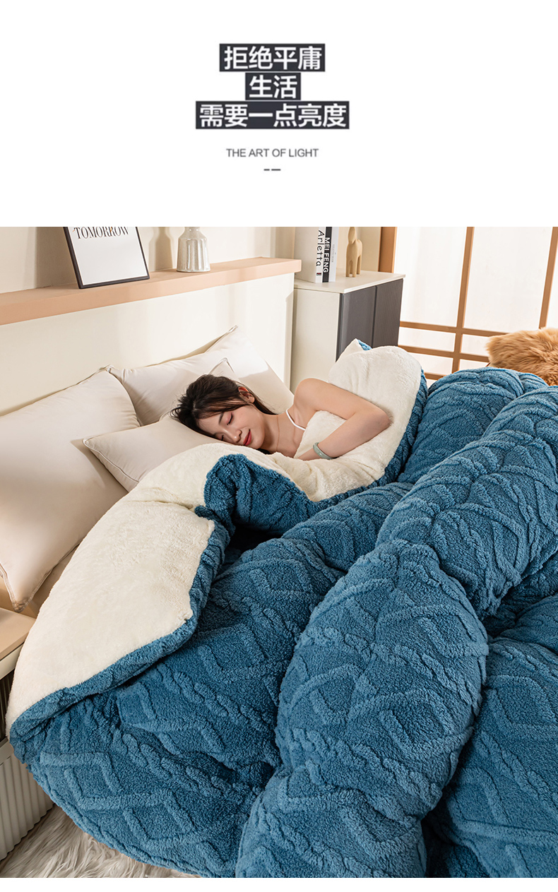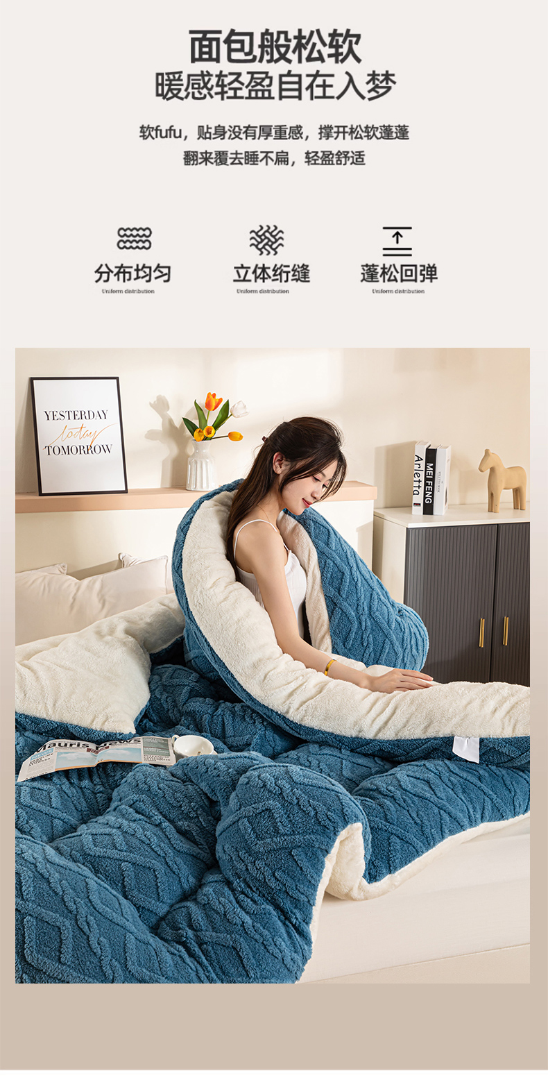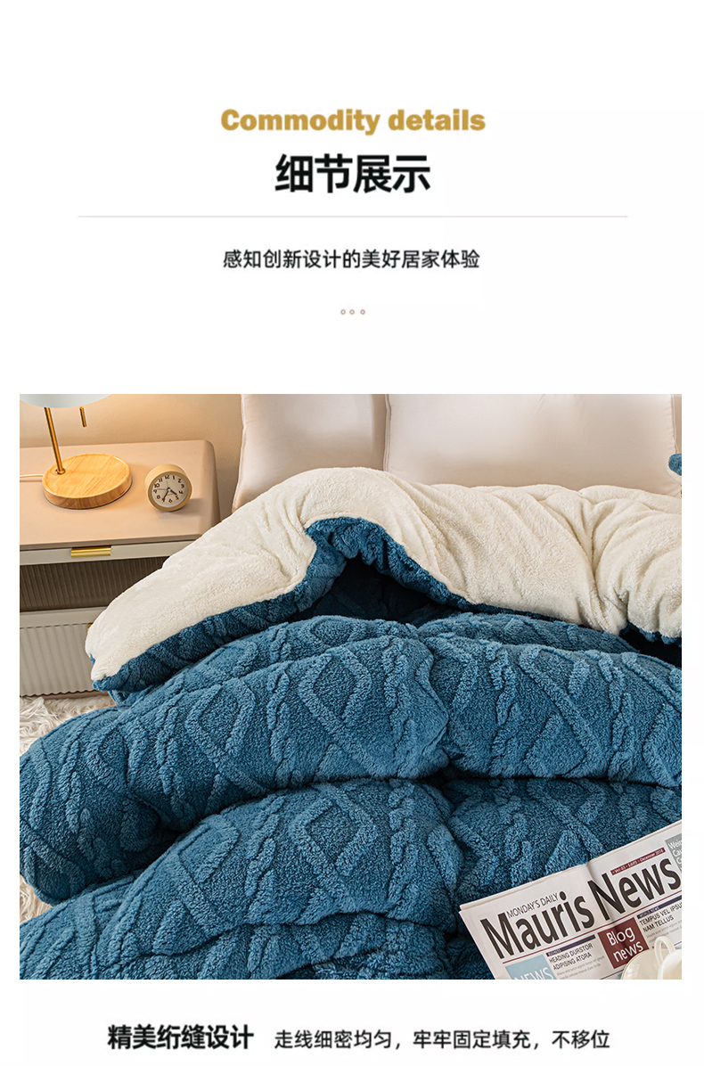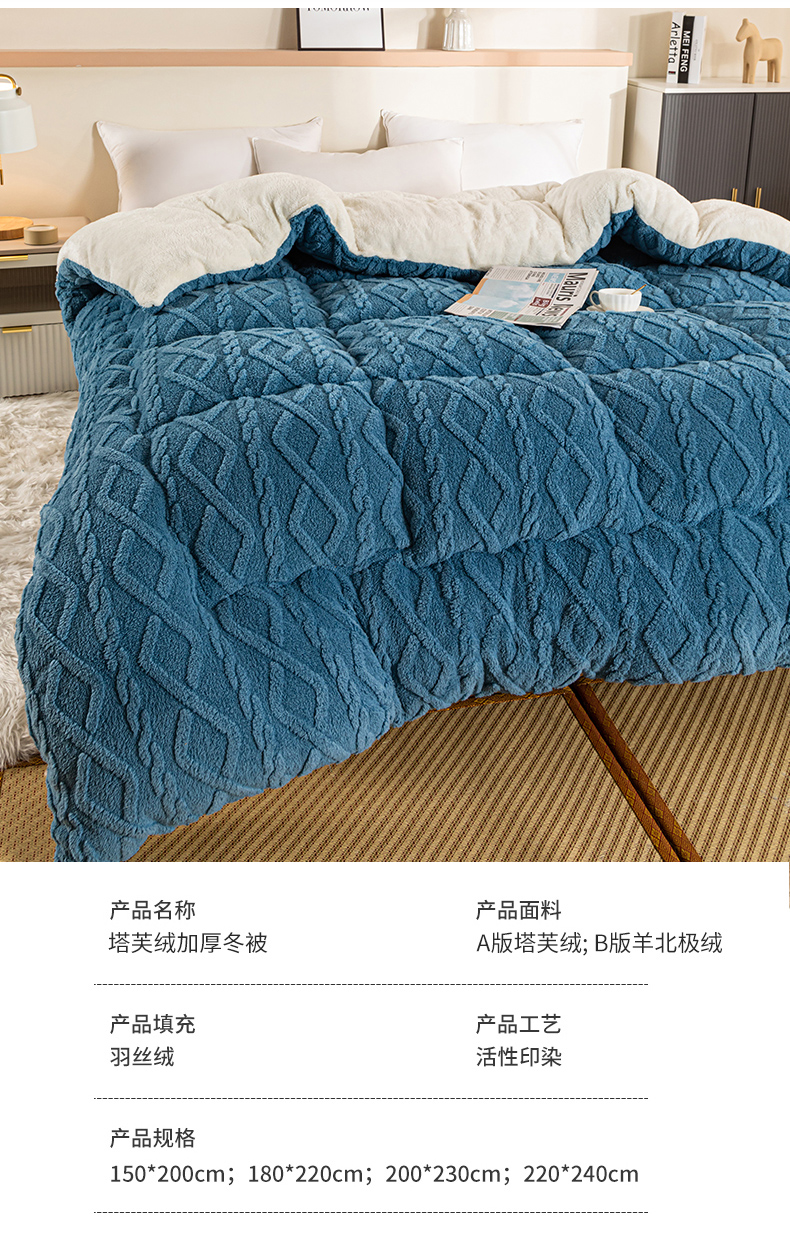 • 91家纺网 家纺一手货源 找家纺 悠米悠家 2025新款塔芙绒北极绒加厚冬被子被芯 蓝色