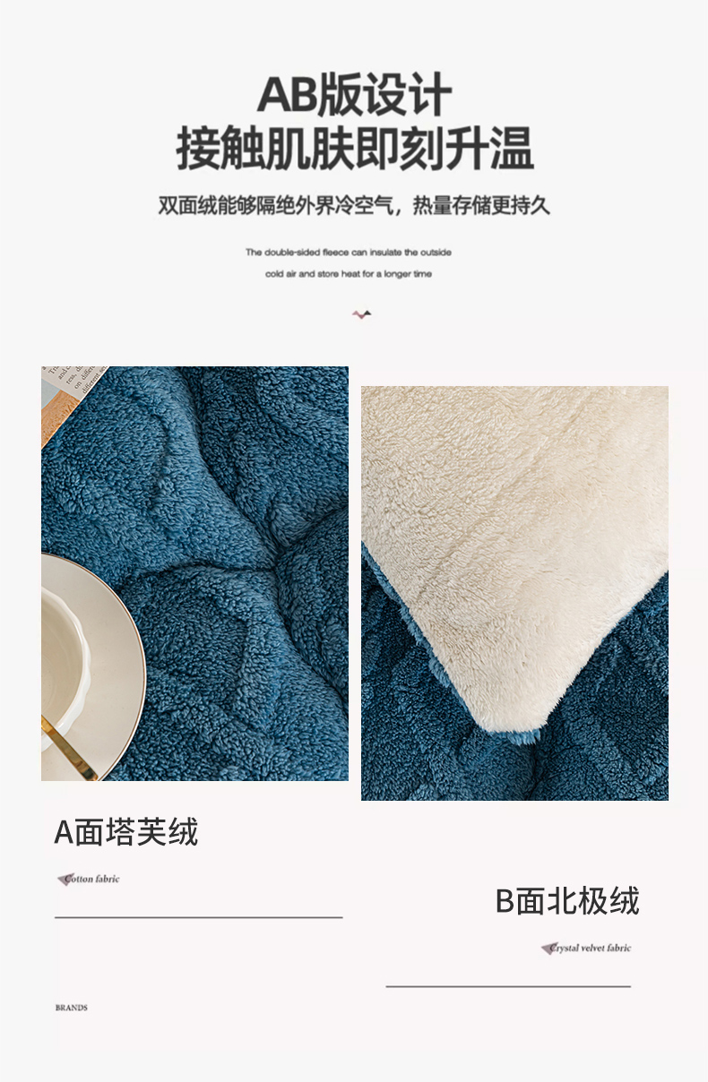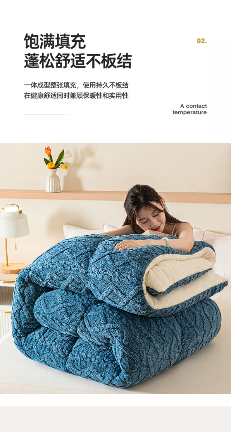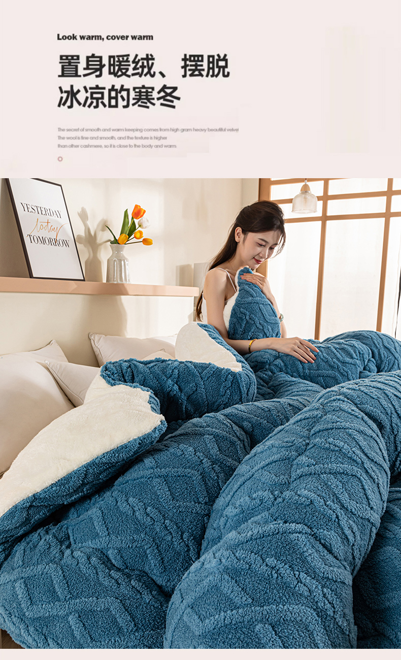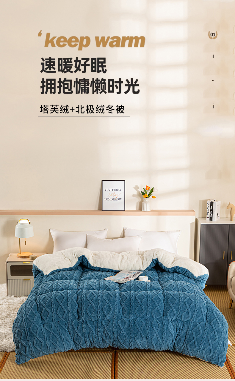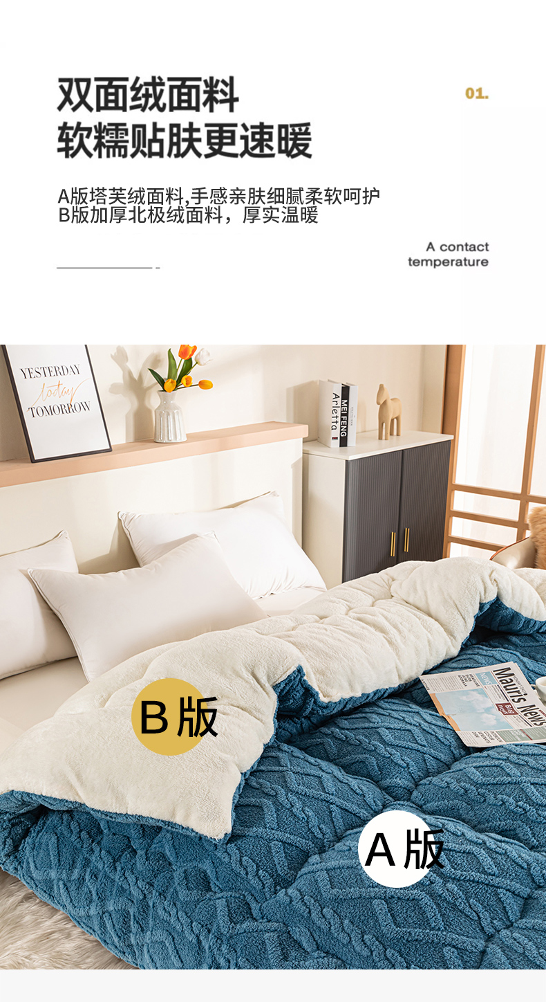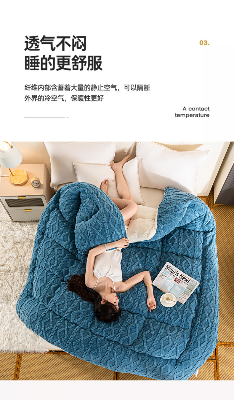 • 91家纺网 家纺一手货源 找家纺 悠米悠家 2025新款塔芙绒北极绒加厚冬被子被芯 蓝色