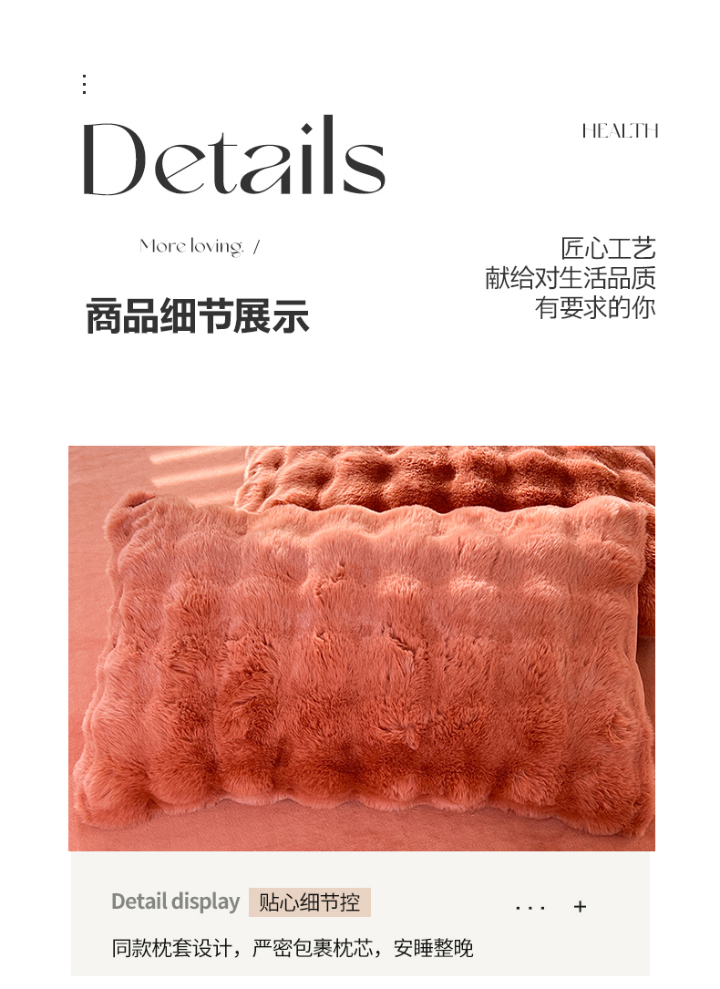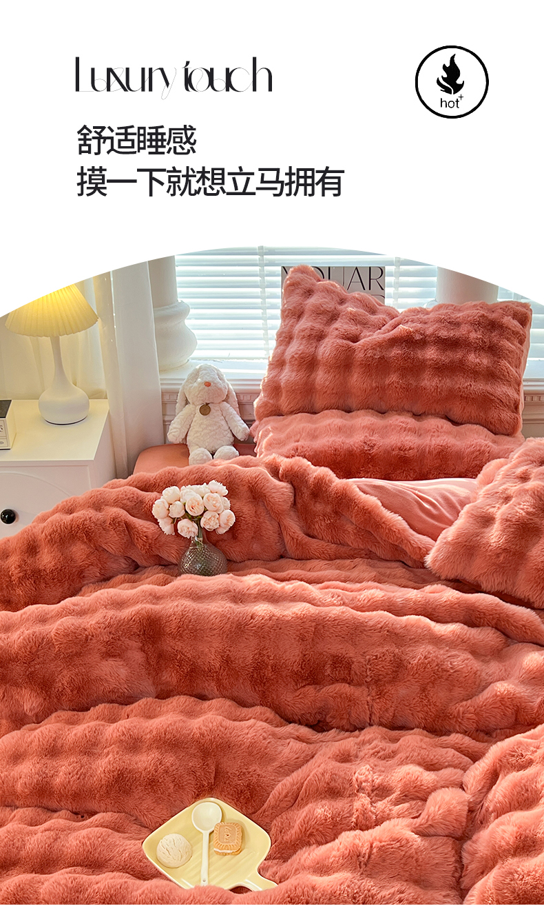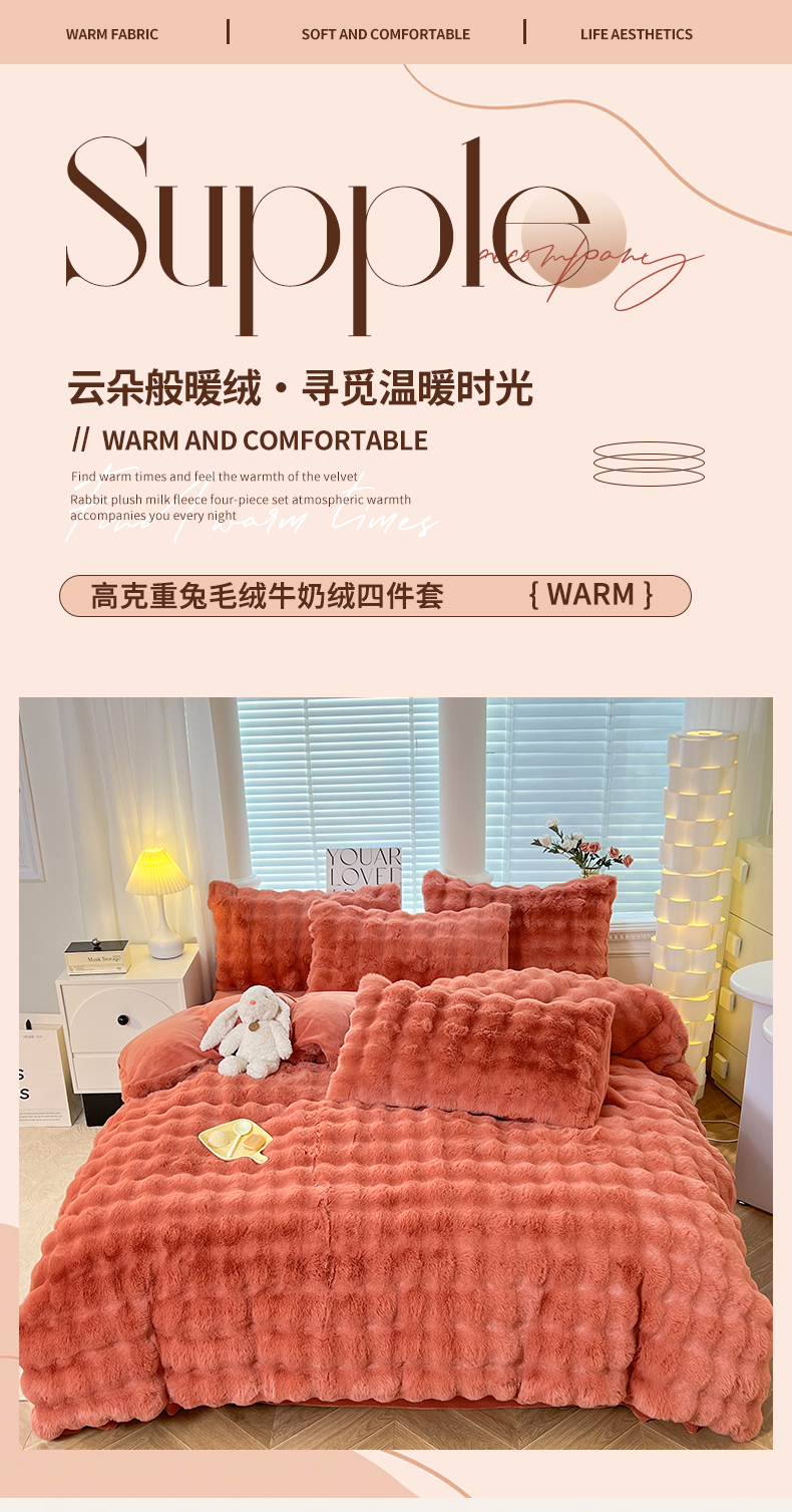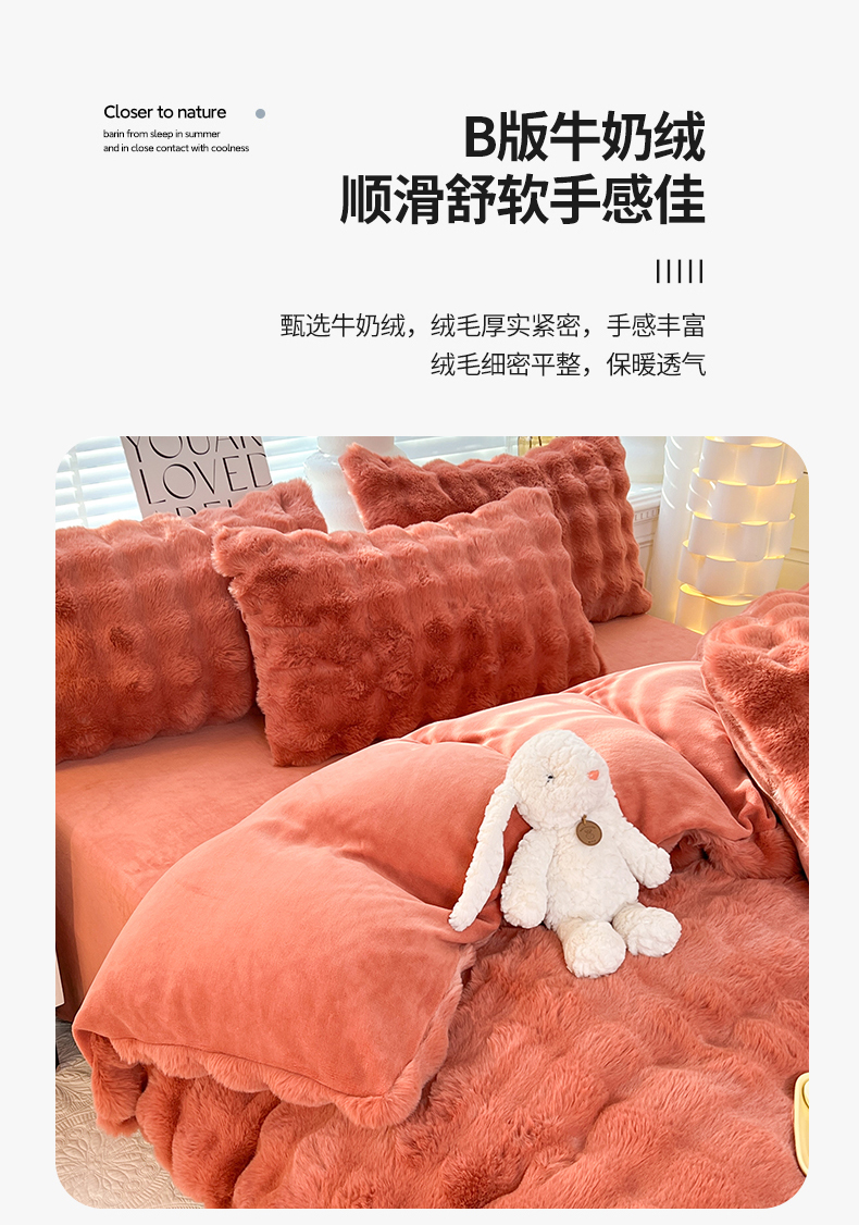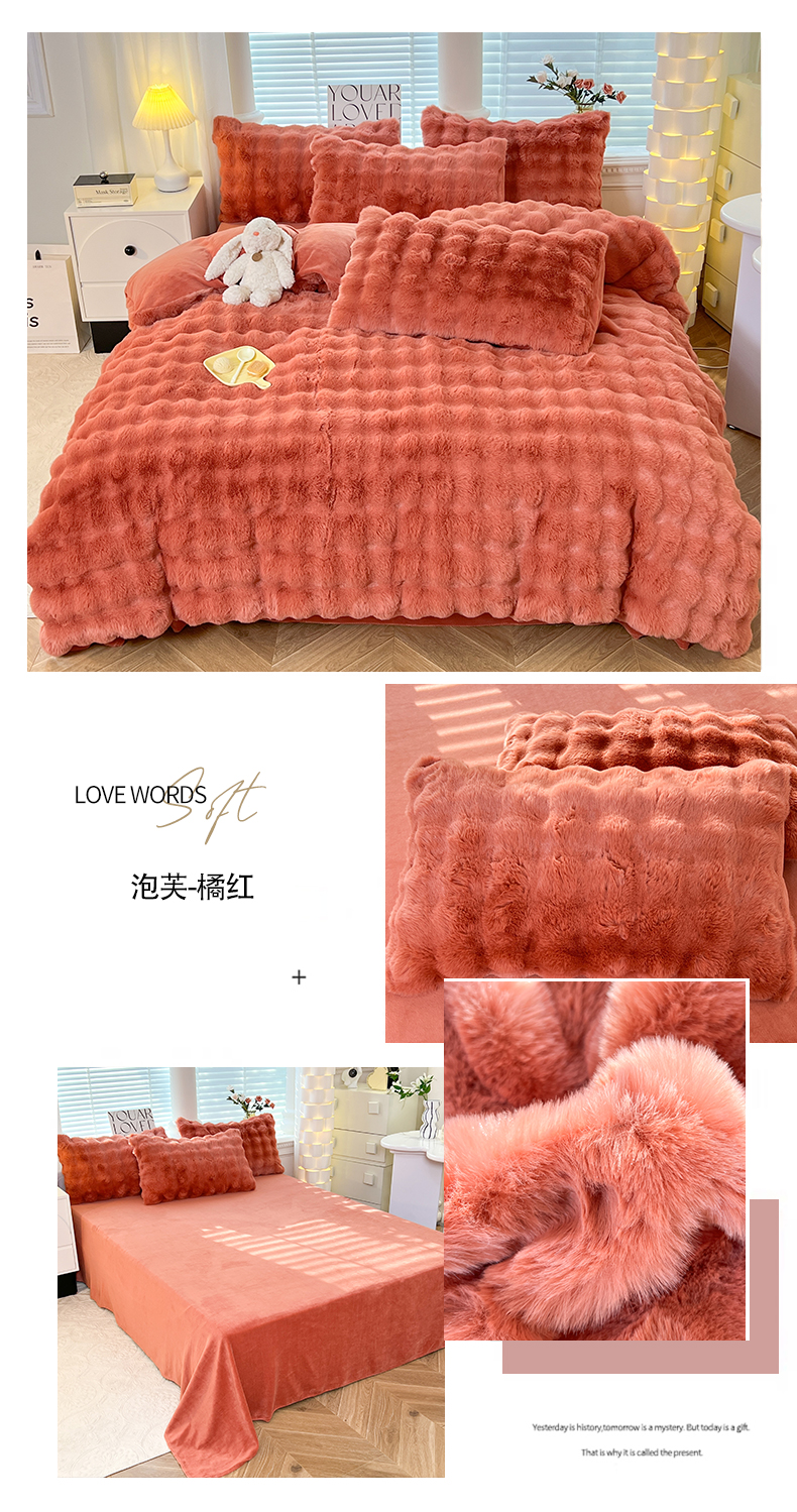 商品名称:妖妖 2023新款兔毛牛奶绒四件套-泡芙 泡芙-橘红