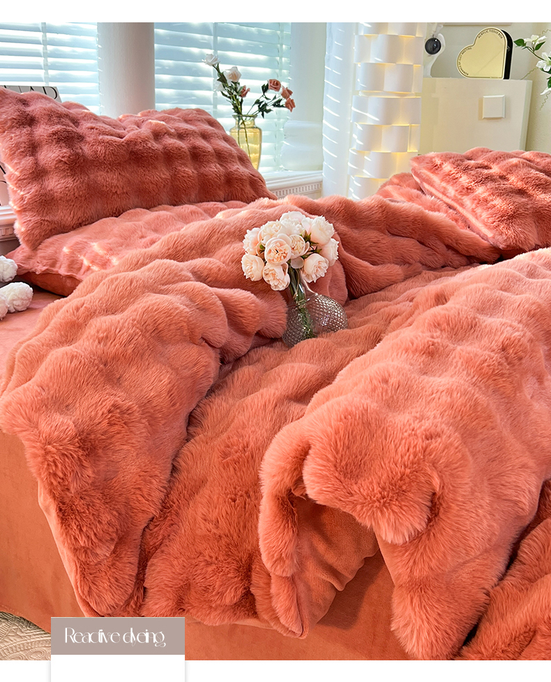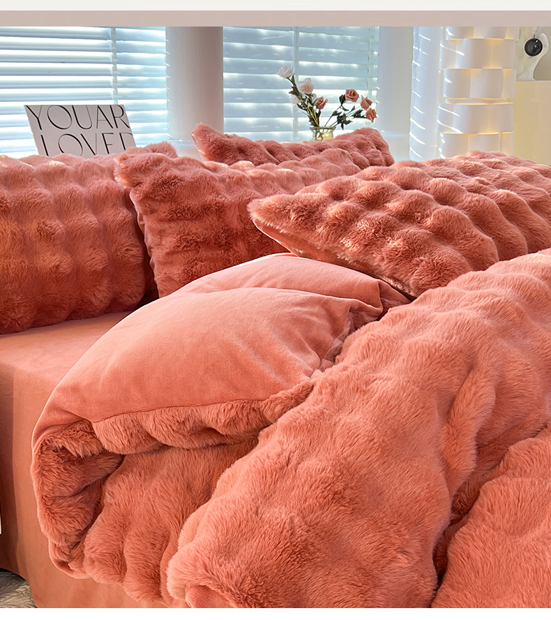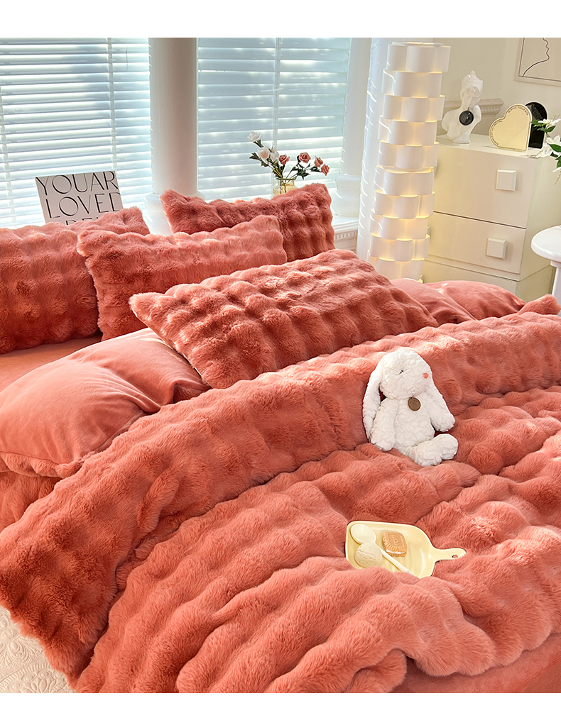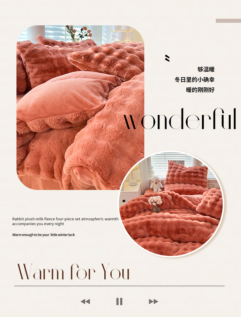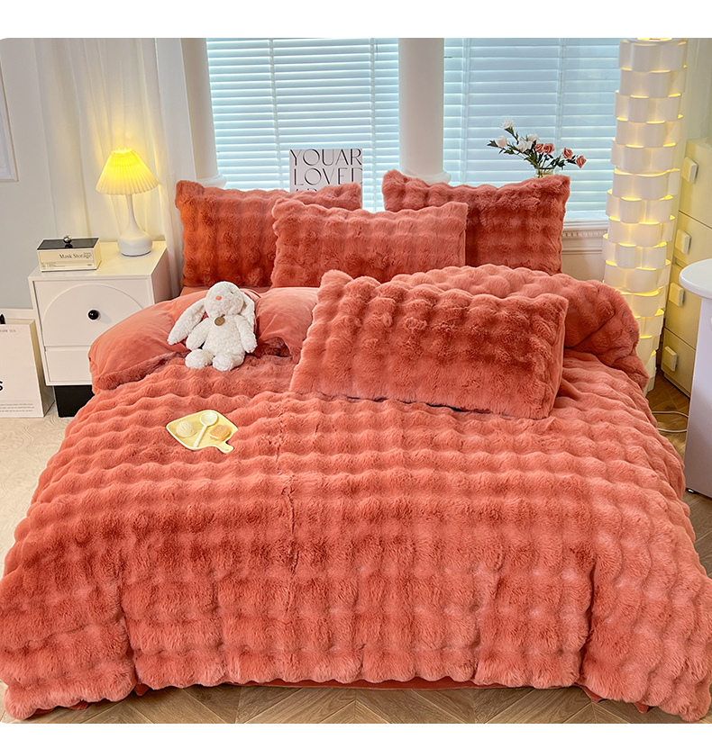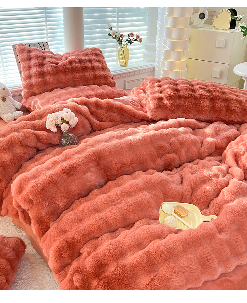 妖妖 2023新款兔毛牛奶绒四件套-泡芙 泡芙-橘红