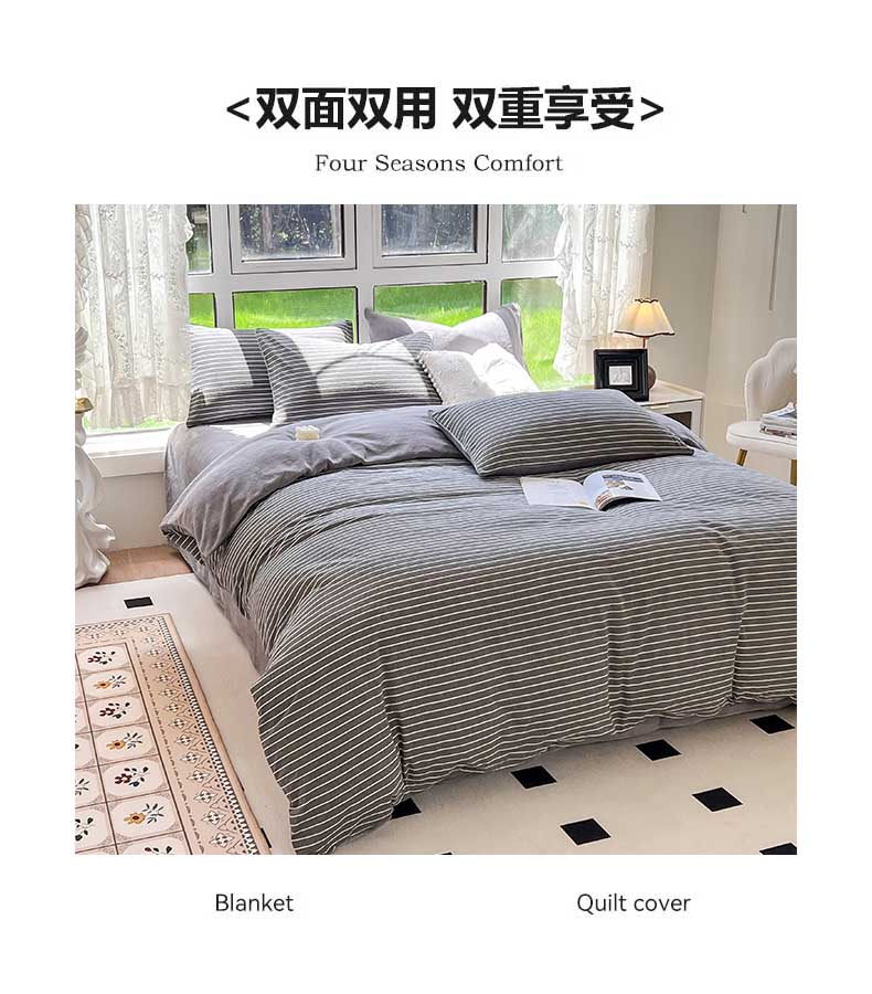(总)柠萌家居 2023新款全棉色织水洗棉加牛奶绒四件套全棉拼牛奶绒