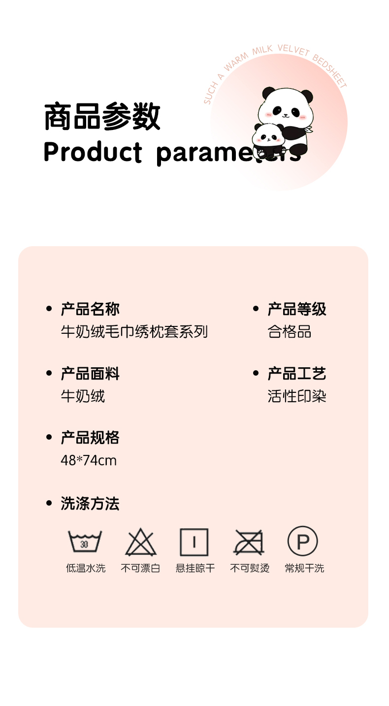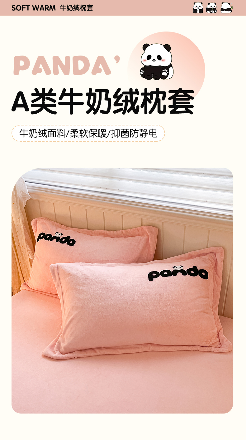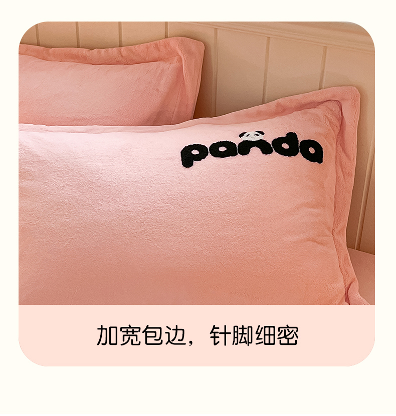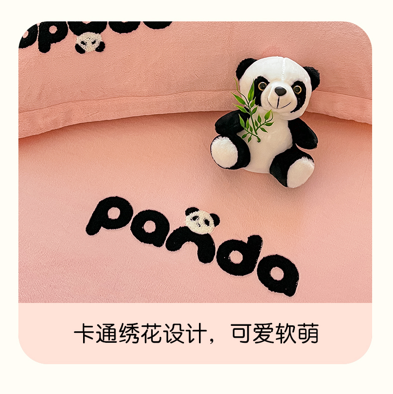 商品名称:丽美人家纺 2023新款熊猫牛奶绒毛巾绣单枕套 熊猫-樱花粉