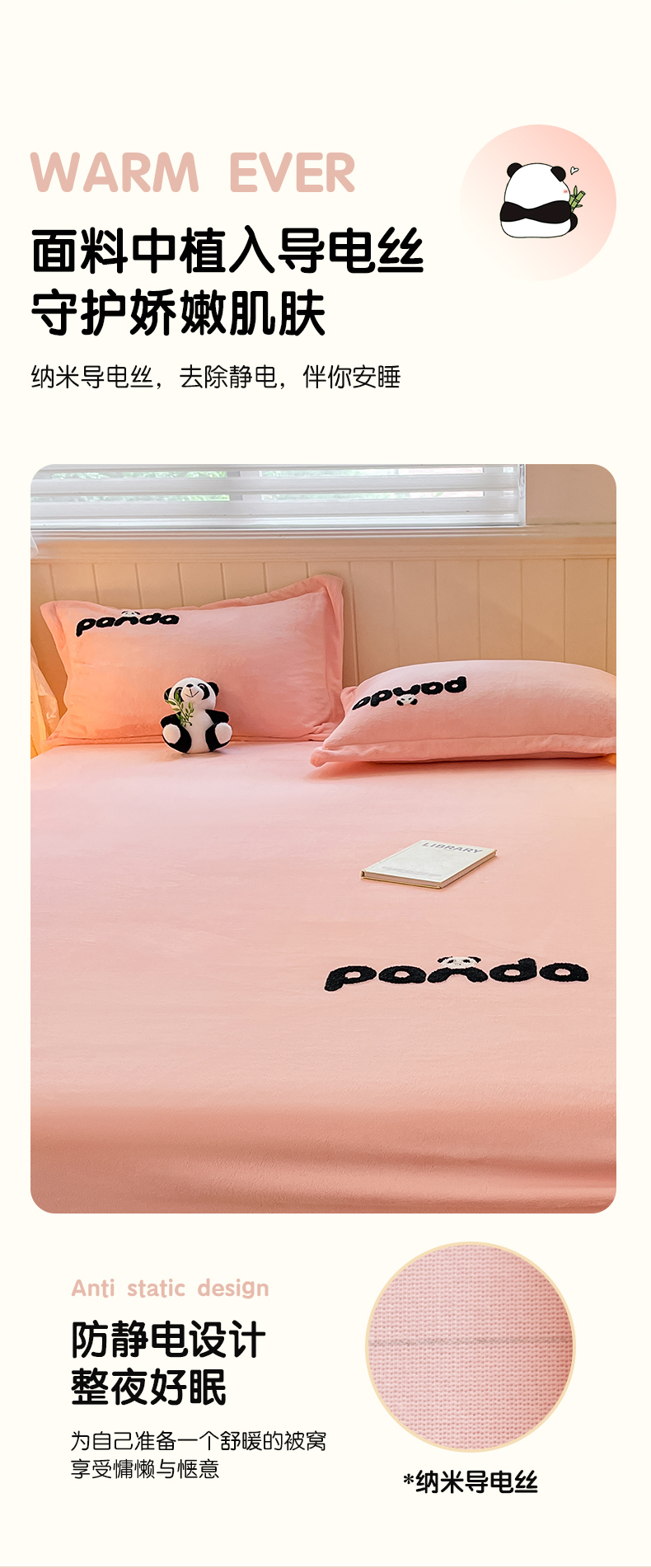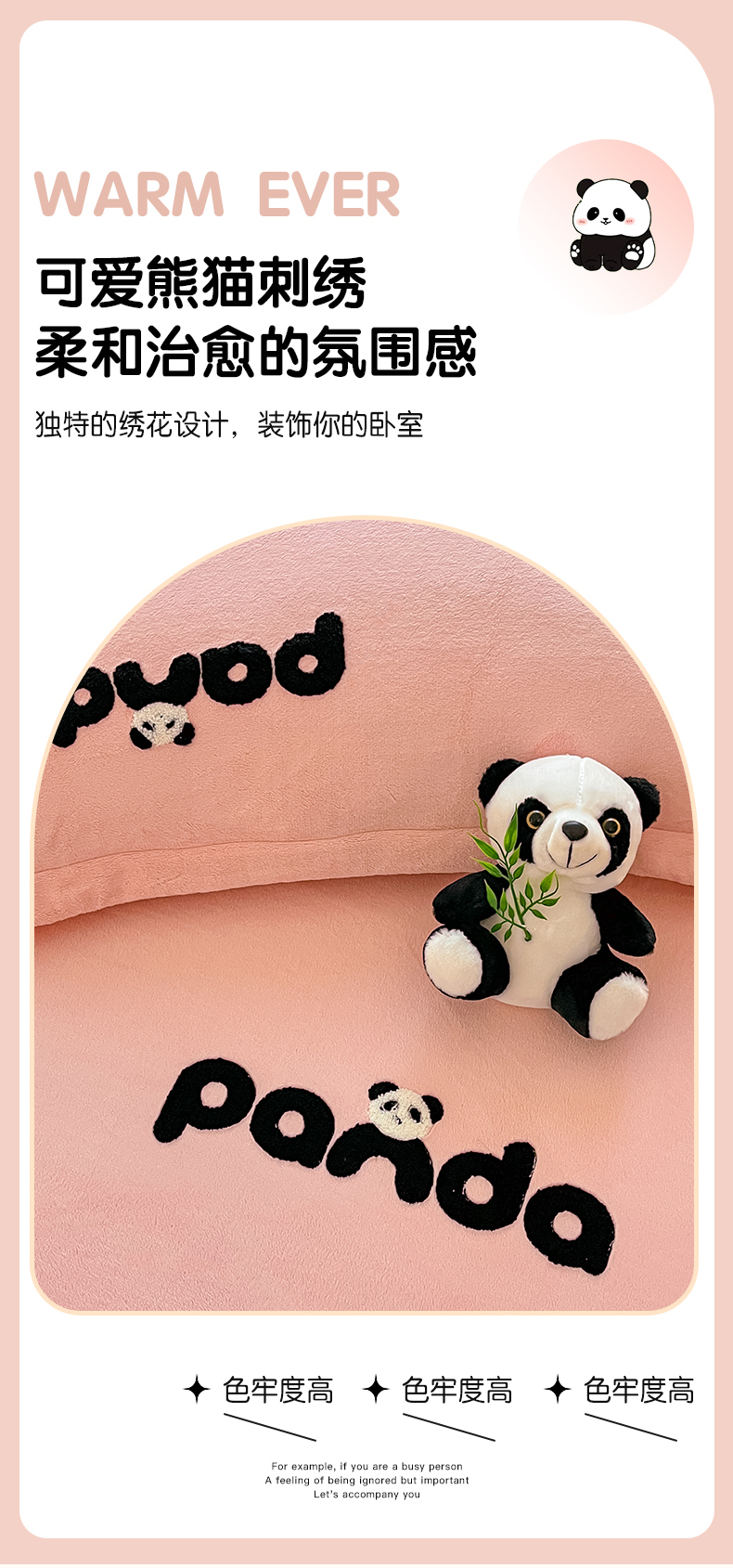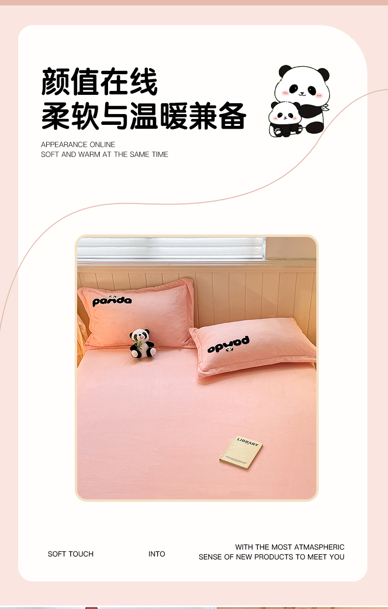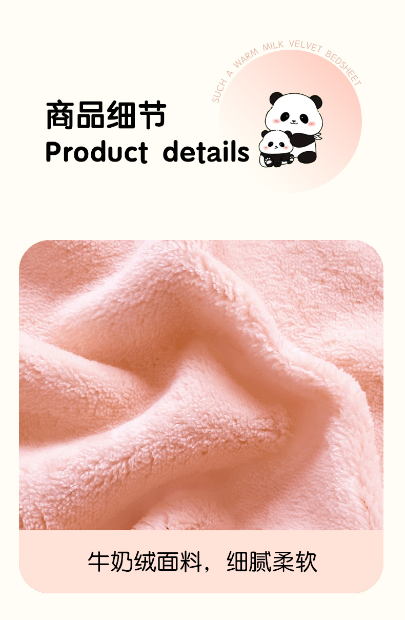 商品名称:丽美人家纺 2023新款熊猫牛奶绒毛巾绣单枕套 熊猫-樱花粉