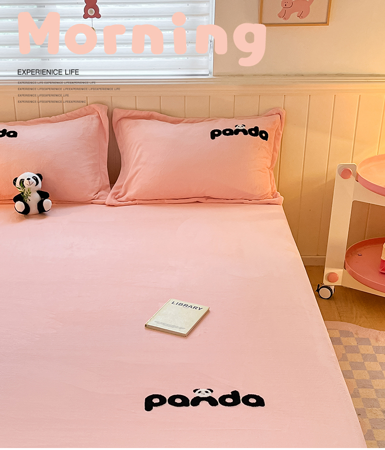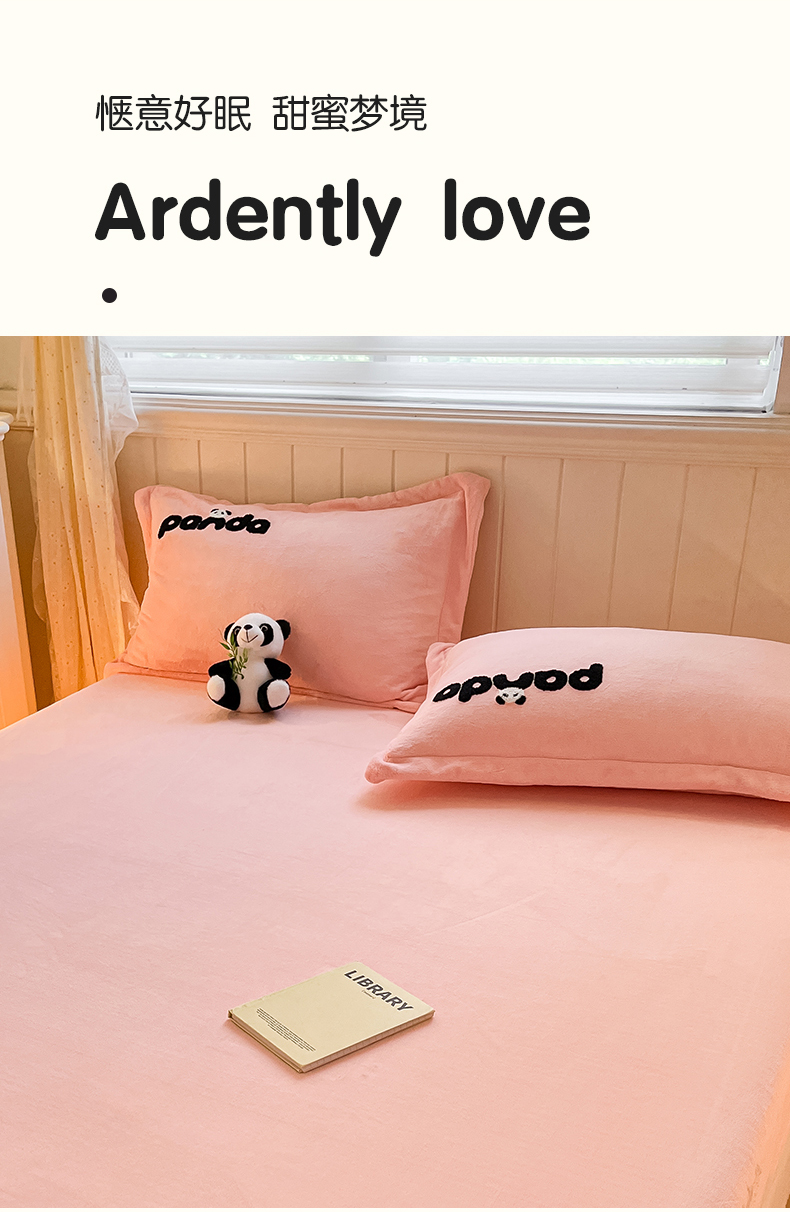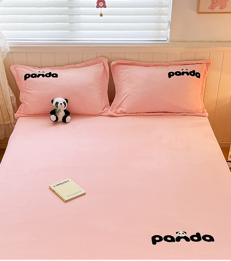 丽美人家纺 2023新款熊猫牛奶绒毛巾绣单枕套 熊猫-樱花粉