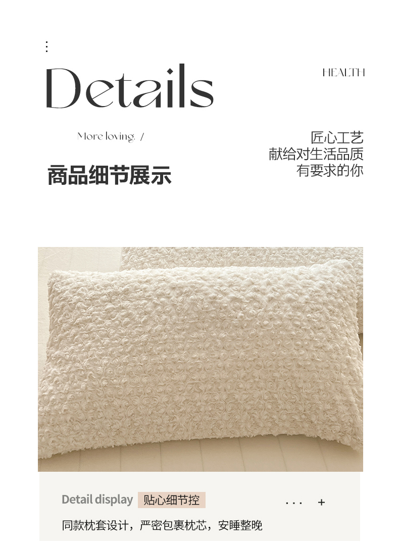 商品名称:妖妖家纺 2023兔毛四件套-小玫瑰小格子 玫瑰米白
