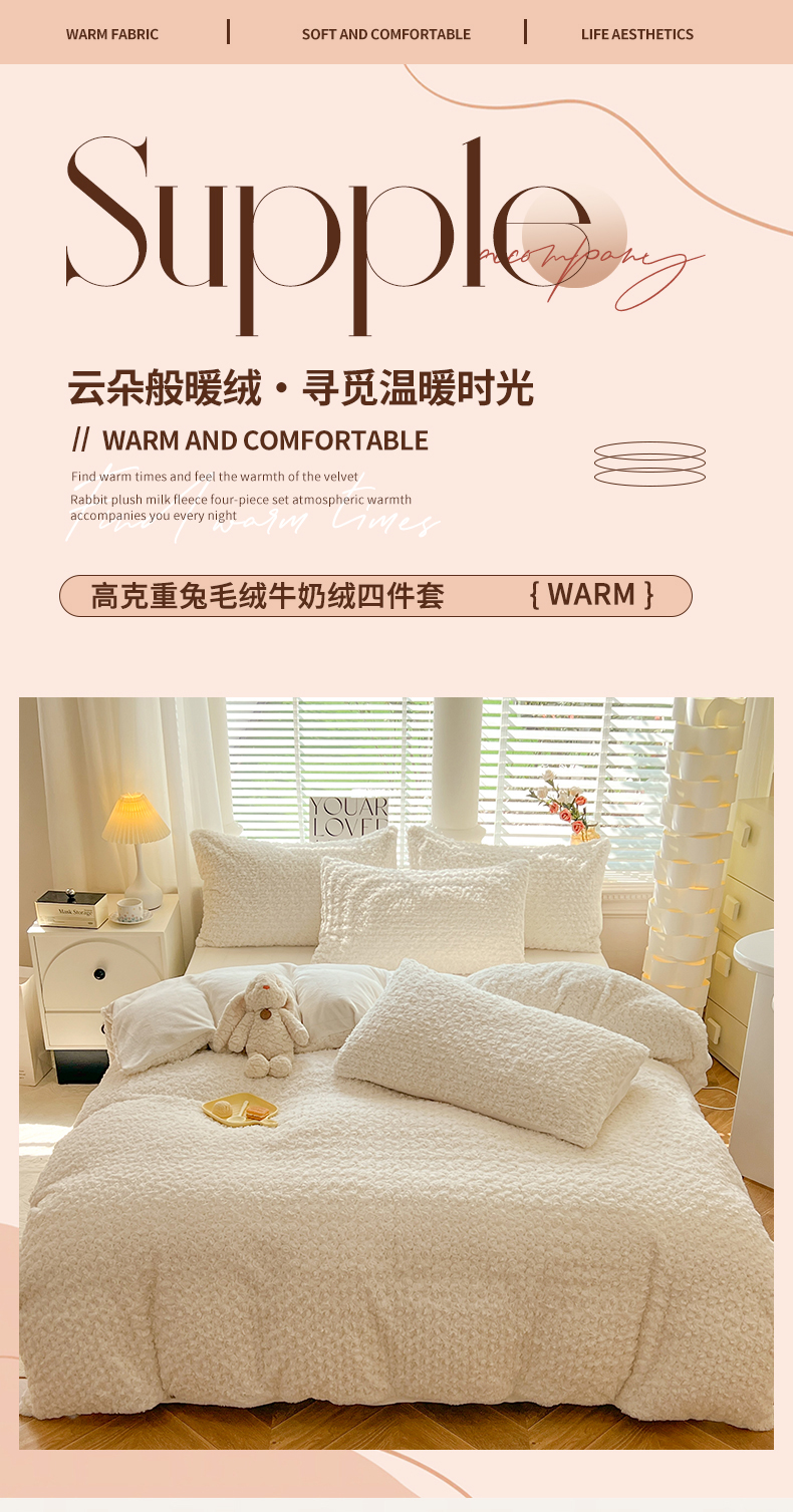 (总)妖妖 2023新款兔毛牛奶绒四件套-泡芙,泡芙-薄荷绿,泡芙-花艺,泡芙-灰紫,泡芙-橘红,泡芙-米白,泡芙-浅灰,泡芙-浅卡其,泡芙-浅紫,泡芙-山茶,泡芙-珊瑚粉,泡芙-深灰,泡芙-水绿,泡芙-字母
