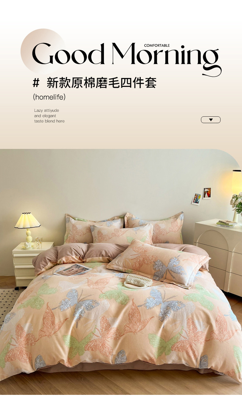 商品名称:慕尚 2025新款全棉磨毛印花单品被套 彩蝶纷