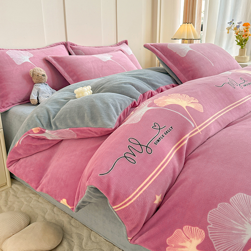 当前位置: 91家纺网 > 商品网购 > 床品套件 > 四件套 > 牛奶绒四件套 > 家贝爱 2023新款加厚牛奶绒四件套 叶叶丝语-豆沙