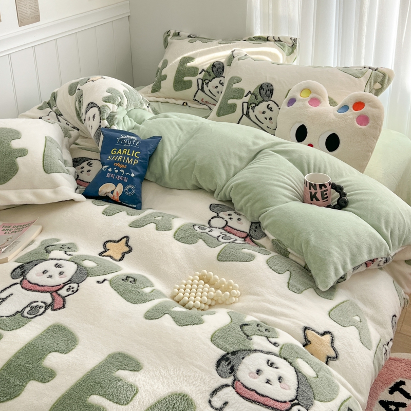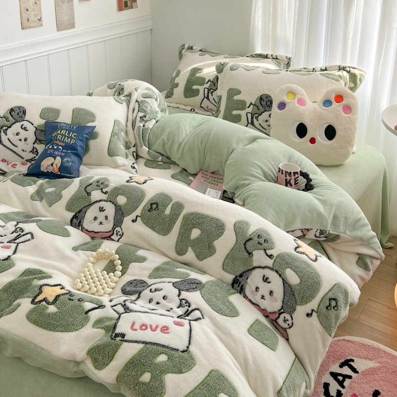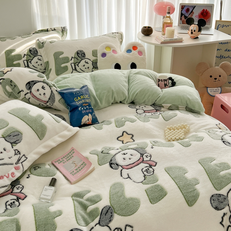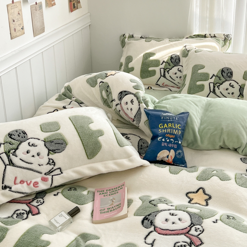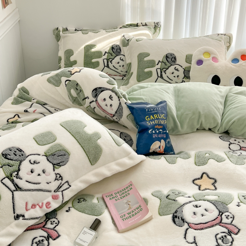 当前位置: 91家纺网 > 商品网购 > 床品套件 > 四件套 > 牛奶绒四件套 > 顾里家纺 2023新款ins韩风∙立体牛奶雪花绒系列四件套 字母小狗