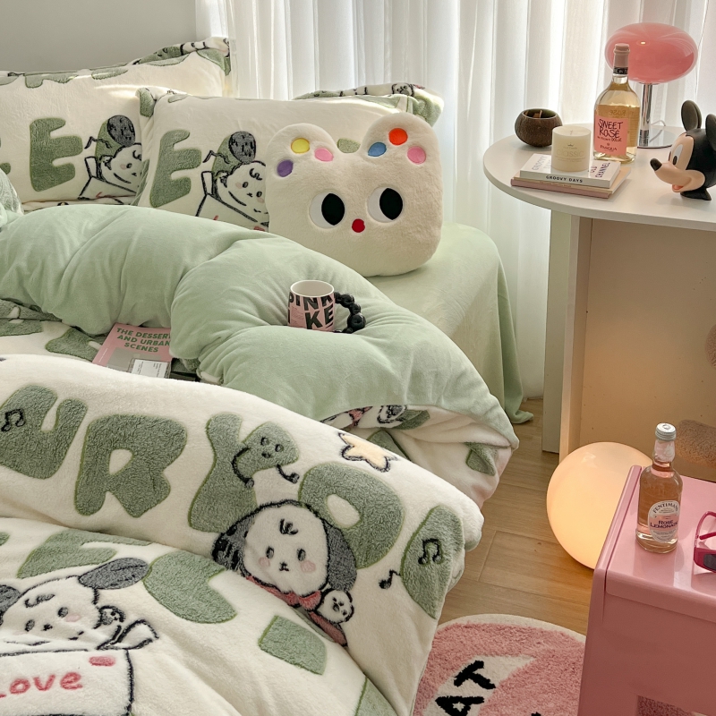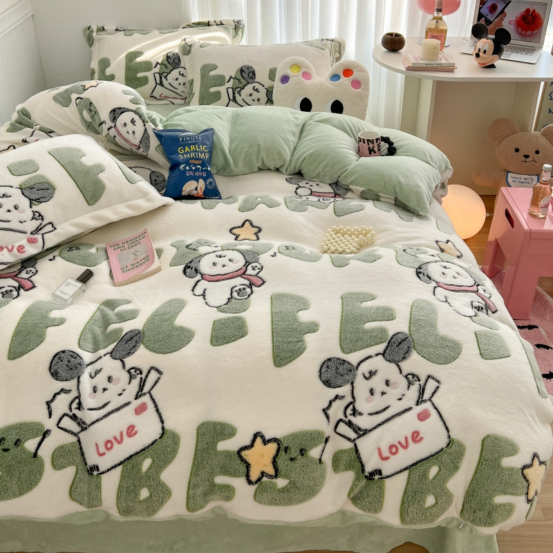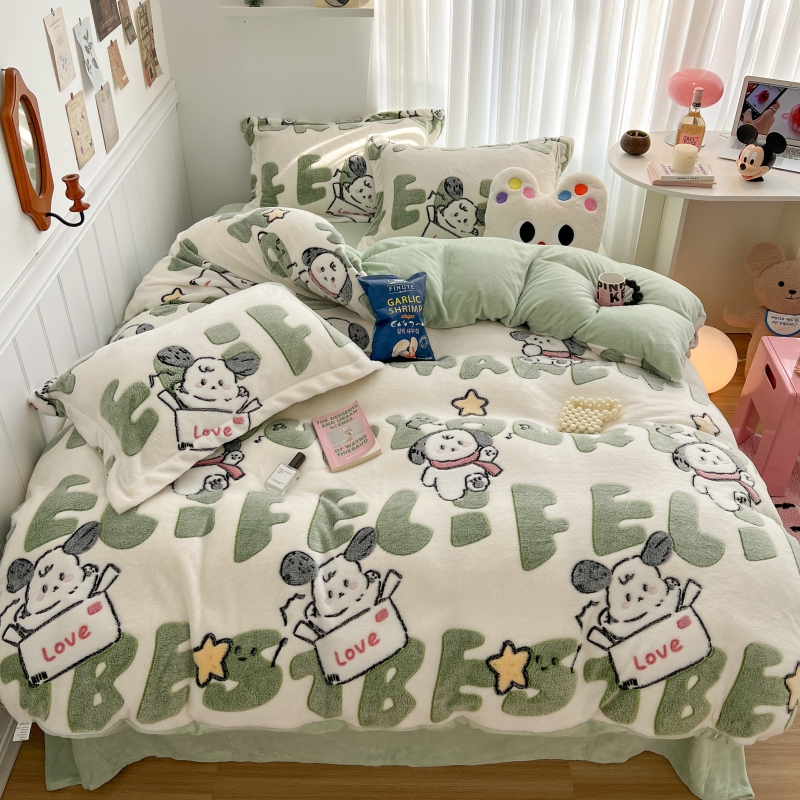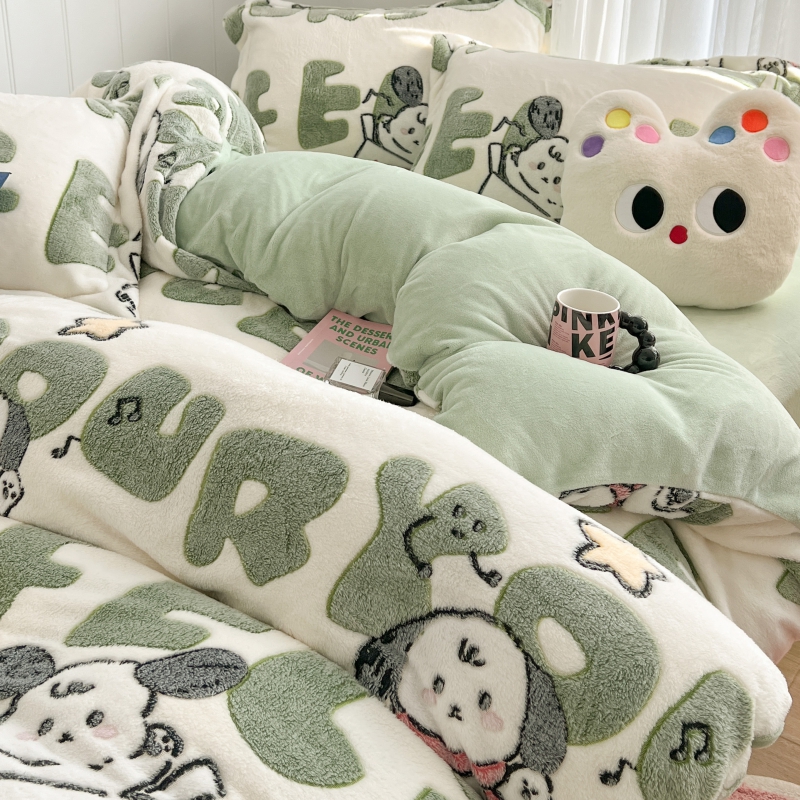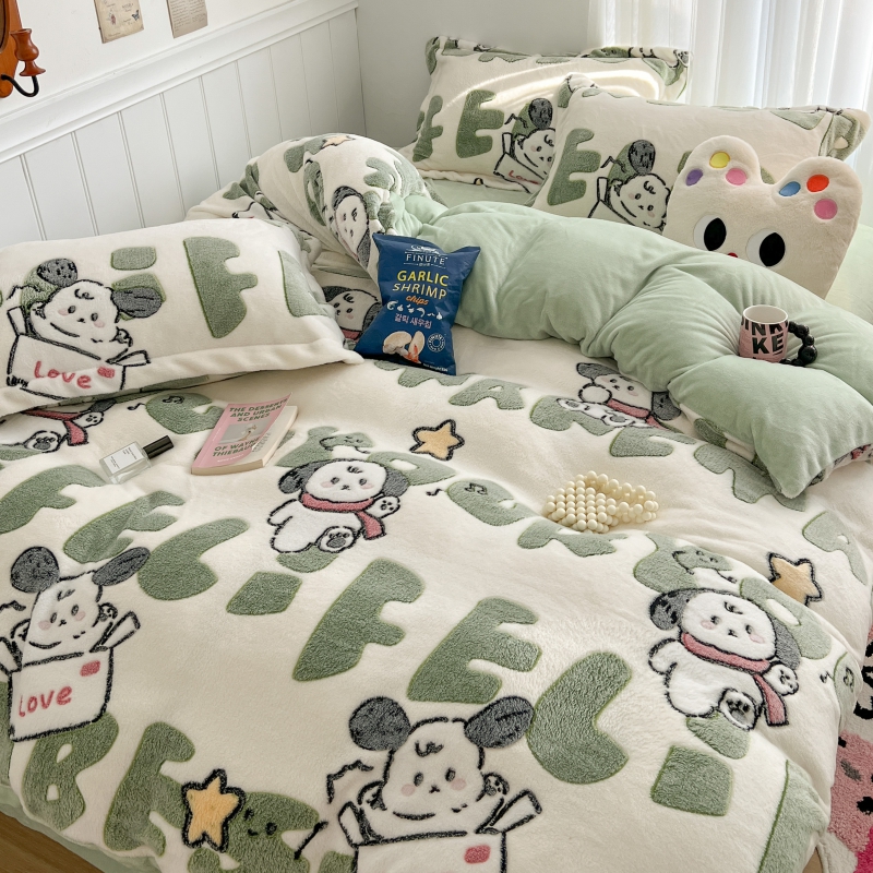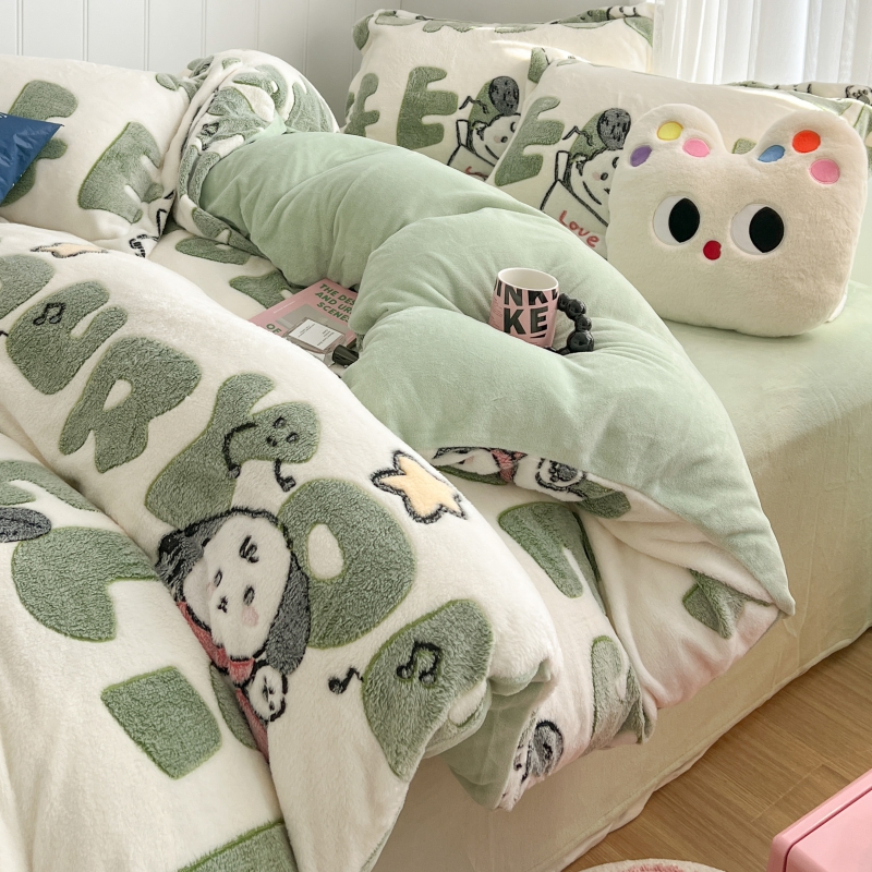 当前位置: 91家纺网 > 商品网购 > 床品套件 > 四件套 > 牛奶绒四件套 > 顾里家纺 2023新款ins韩风∙立体牛奶雪花绒系列四件套 字母小狗