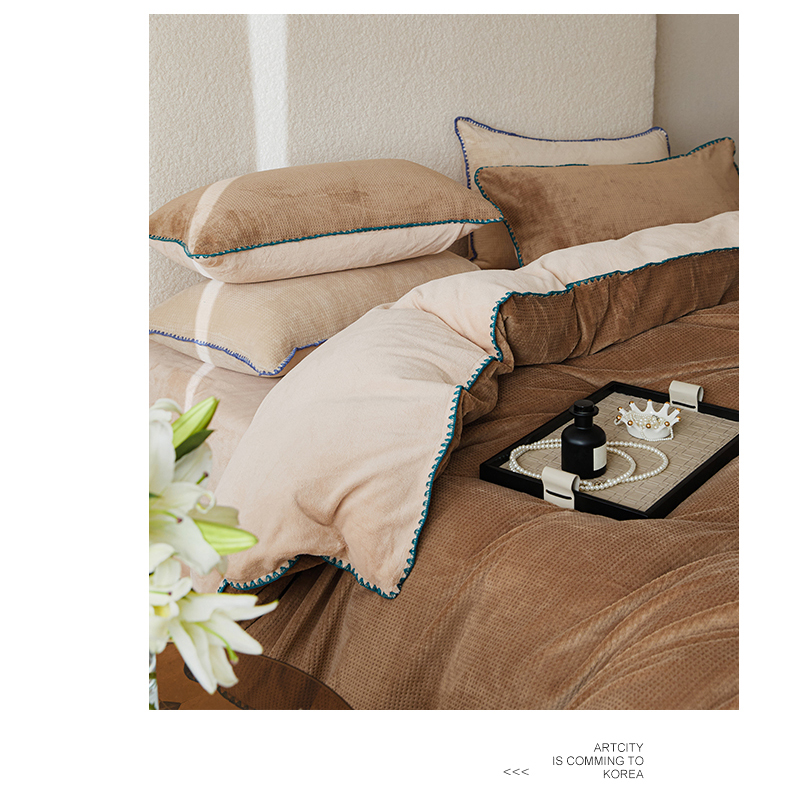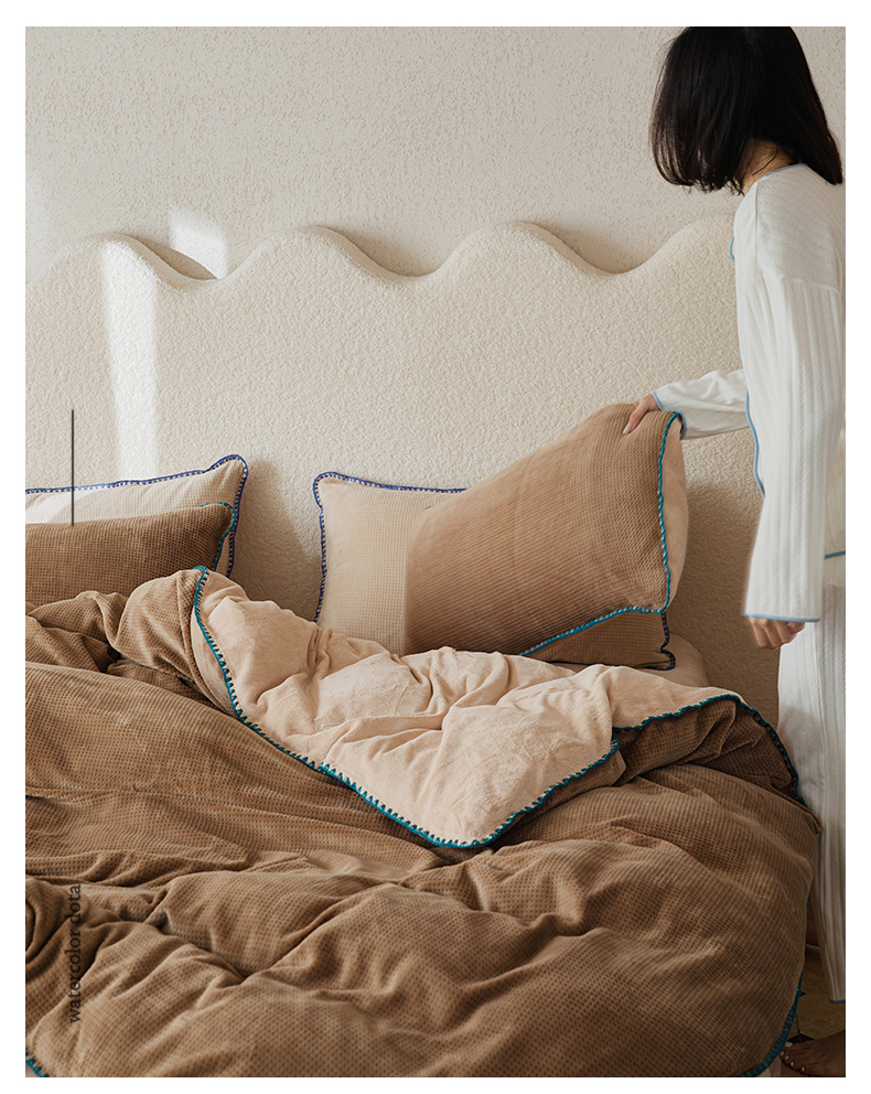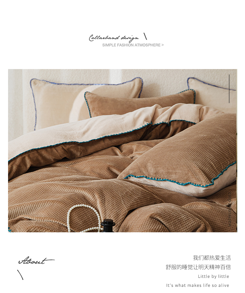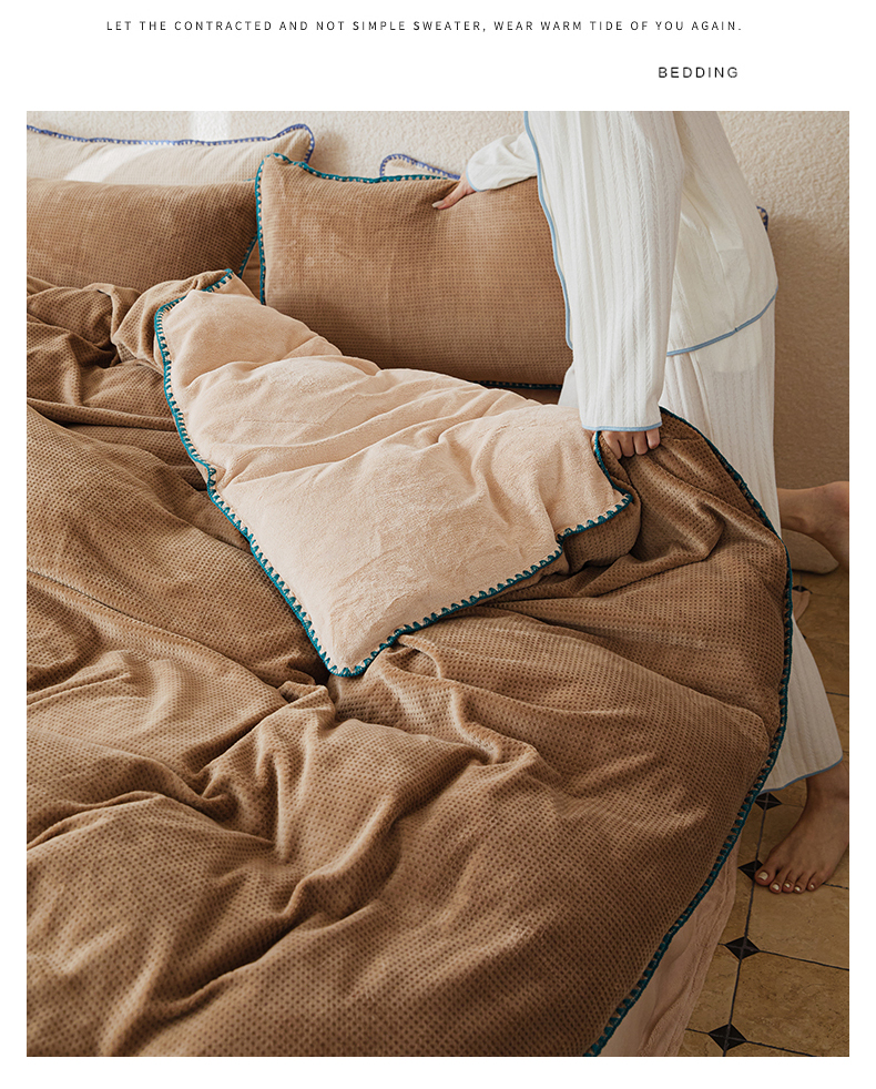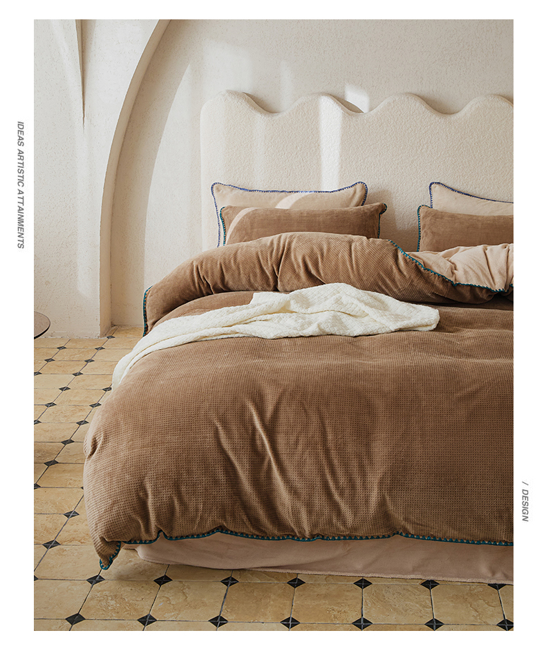 当前位置: 91家纺网 > 商品网购 > 床品套件 > 四件套 > 雕花绒四件套 > 新款华夫格立体雕花绒四件套-未央系列 未央-木兰咖