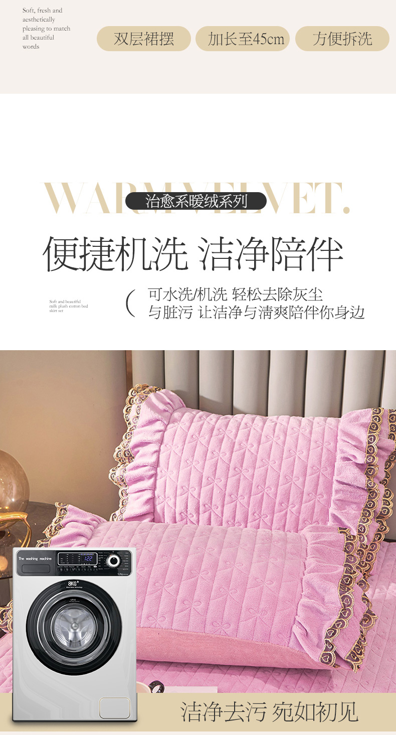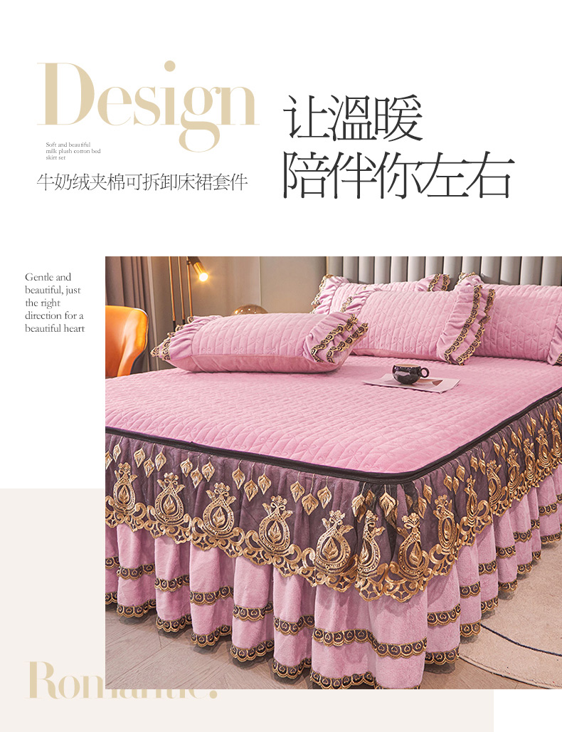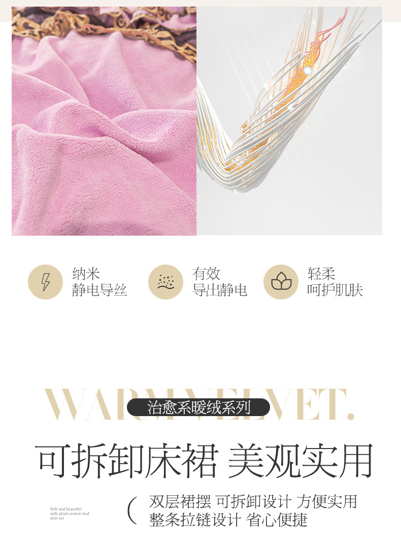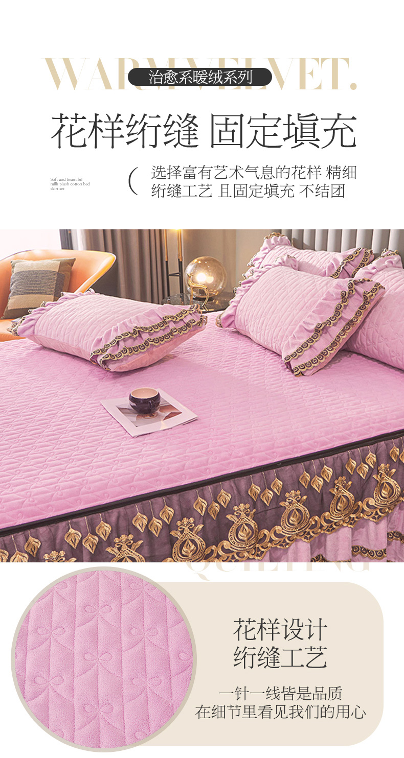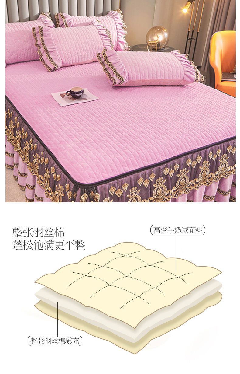 商品名称:虹星家纺 2023新款牛奶绒夹棉蕾丝可拆卸床裙系列单床裙 梦幻巴黎 柔紫