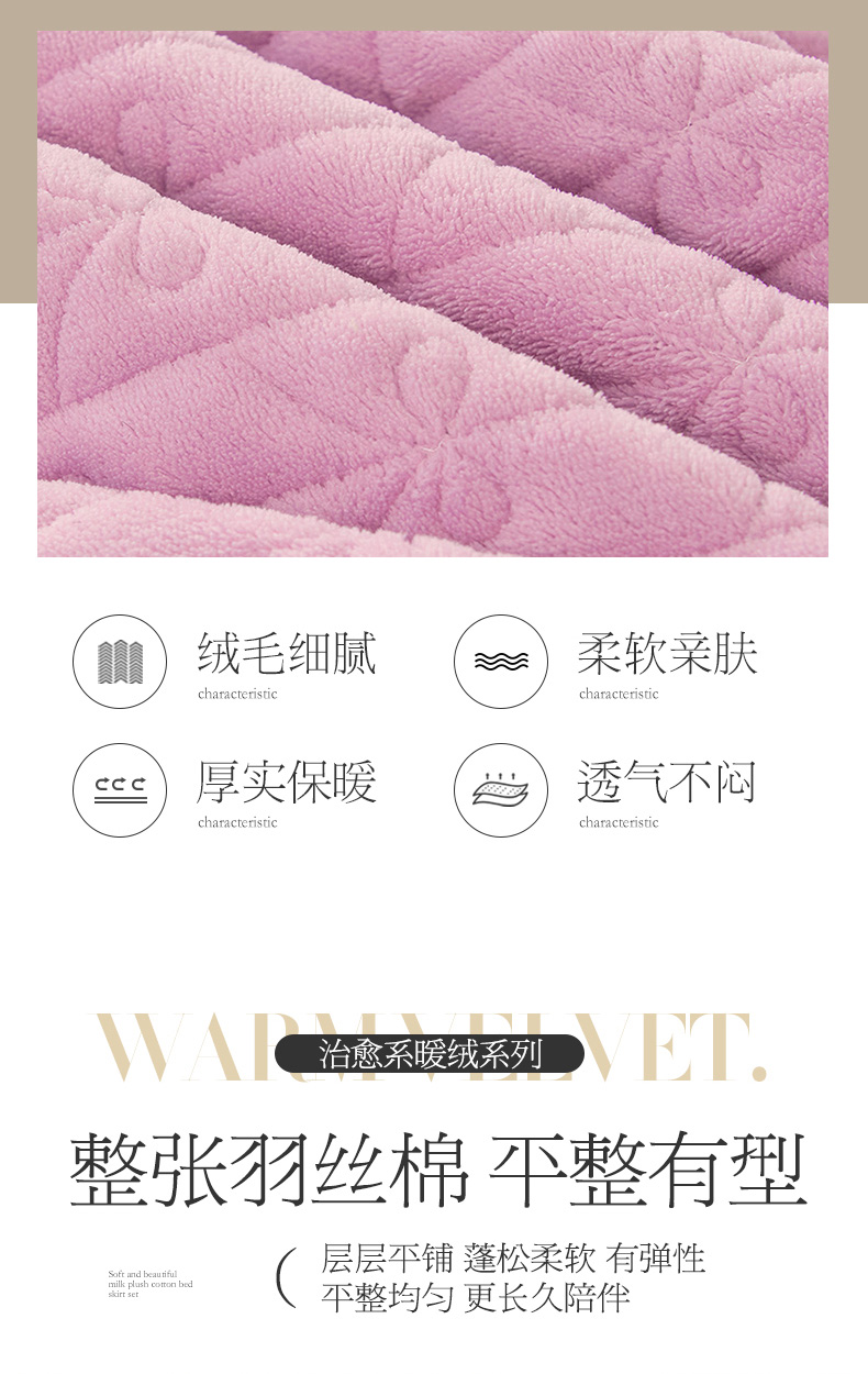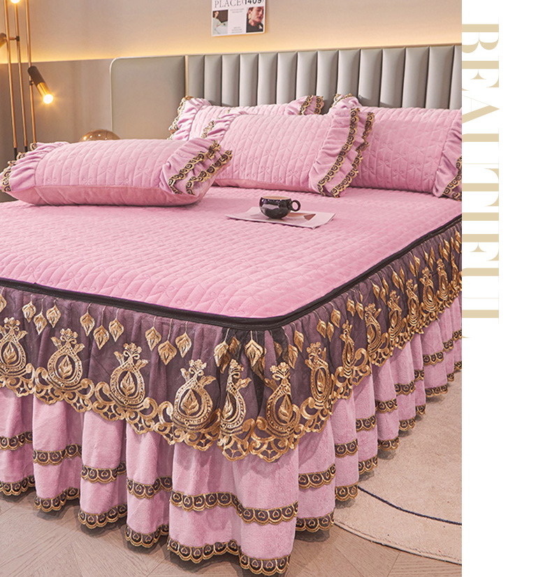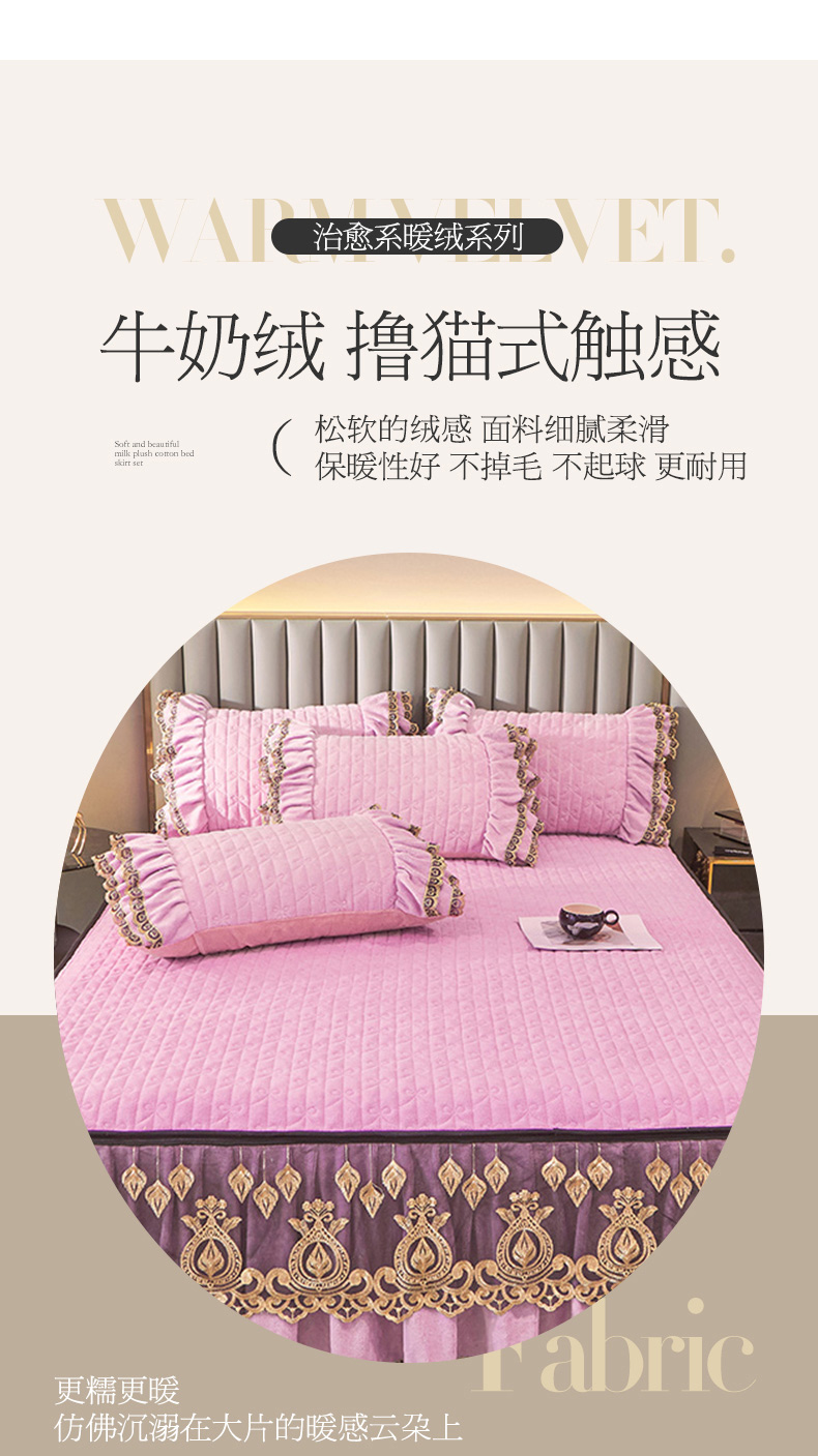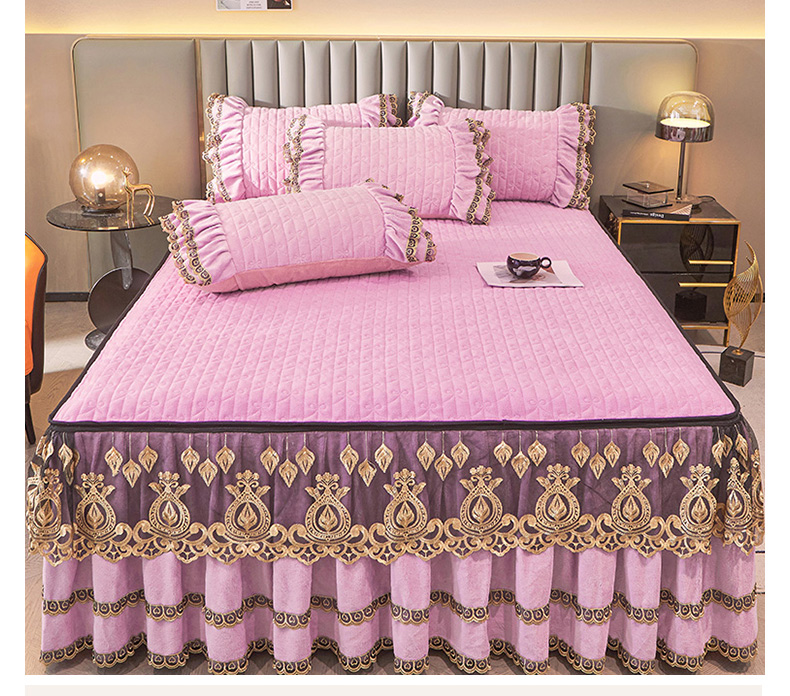 虹星家纺 2023新款牛奶绒夹棉蕾丝可拆卸床裙系列单床裙 梦幻巴黎 柔紫