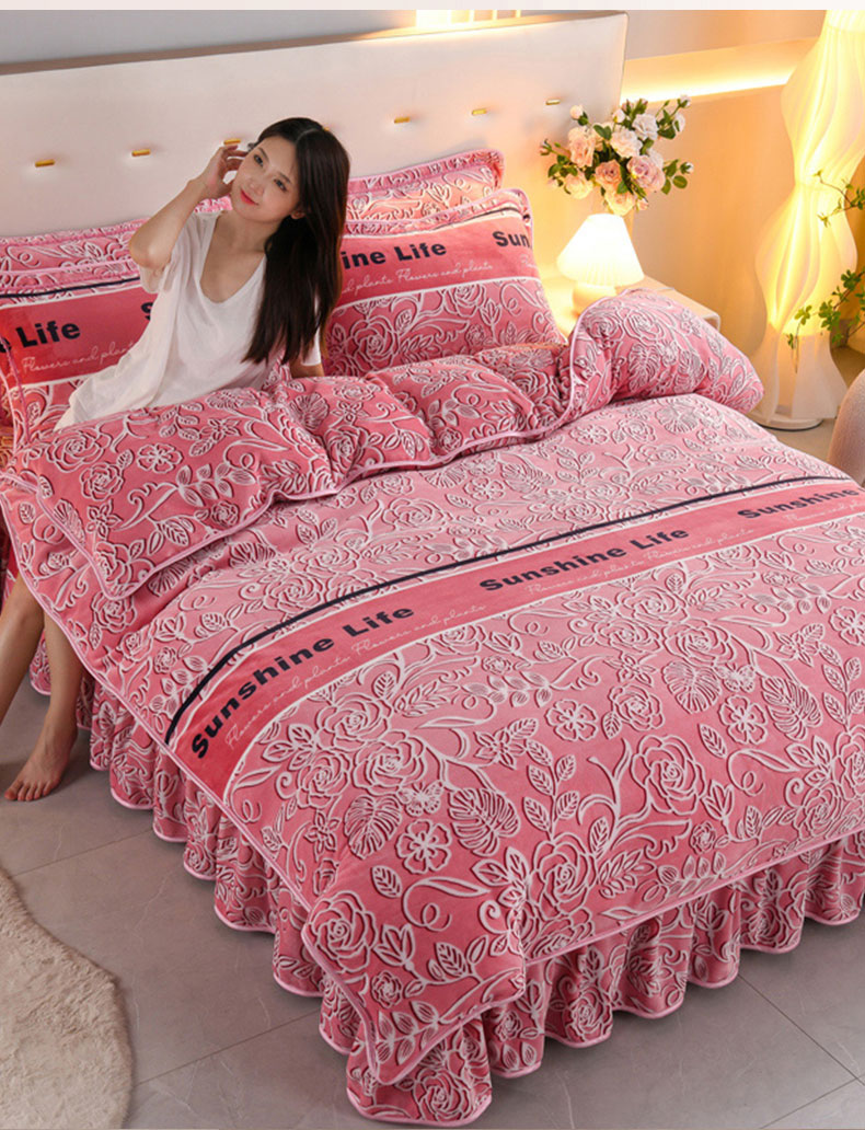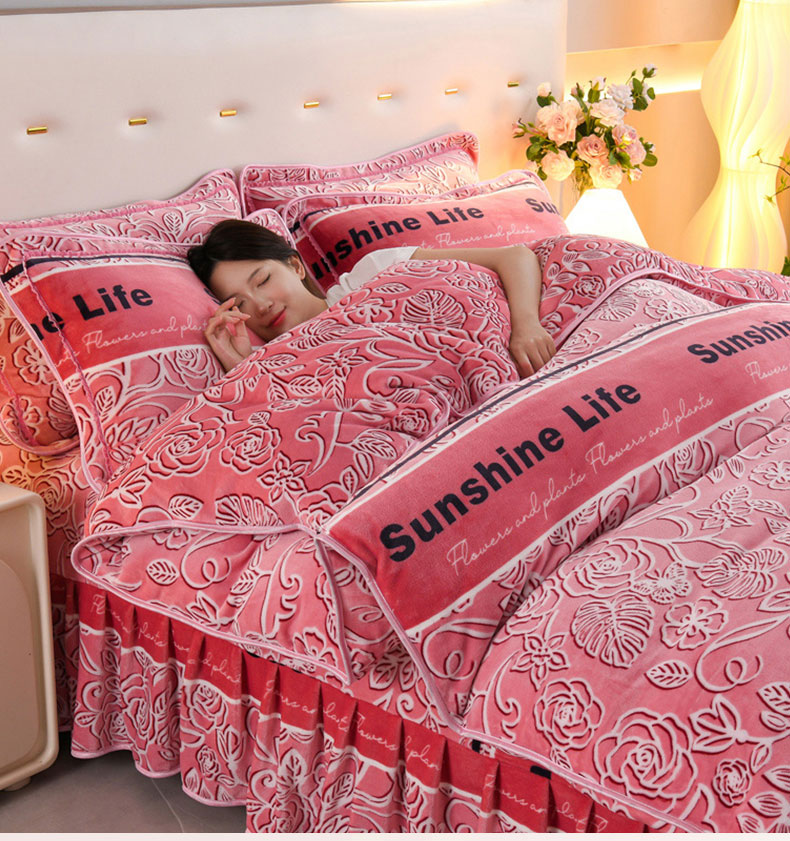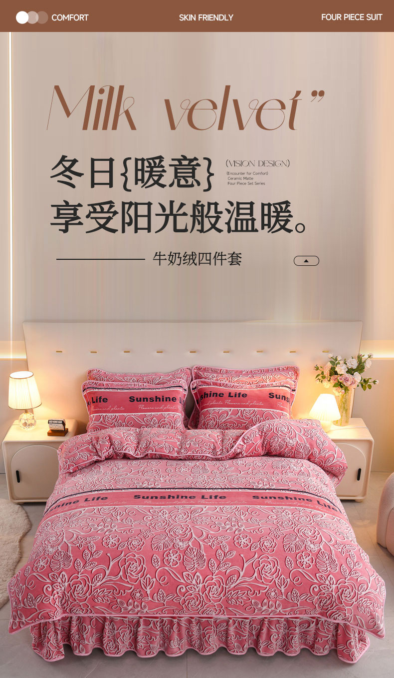 (总)静缘分 2025新款230克特厚8.5斤牛奶绒金貂绒床裙款保暖四件套