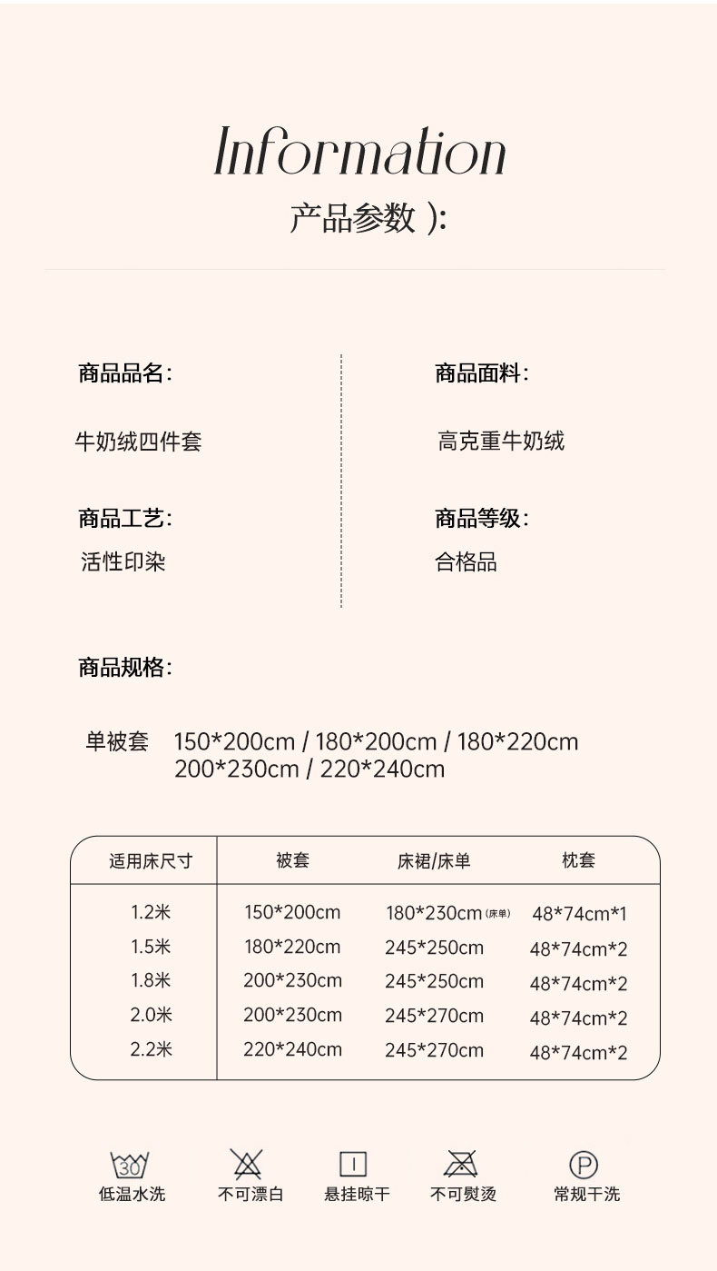 商品名称:(总)静缘分 2025新款230克特厚8.5斤牛奶绒金貂绒床裙款保暖四件套