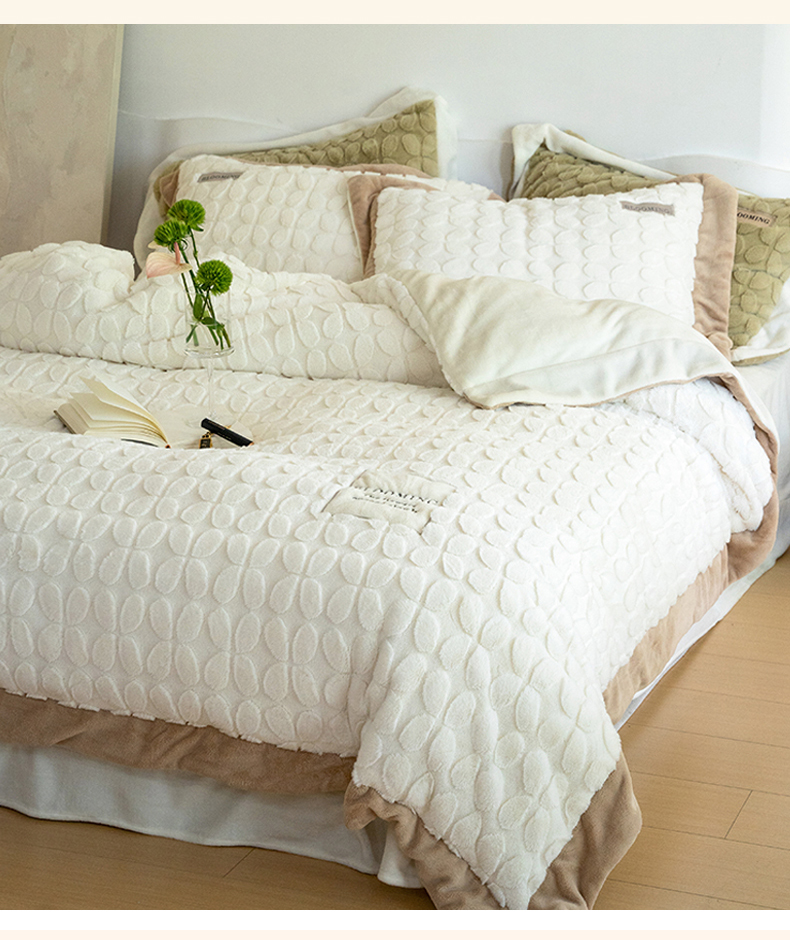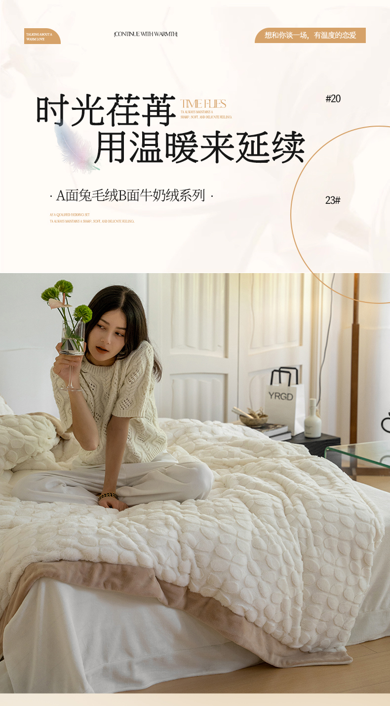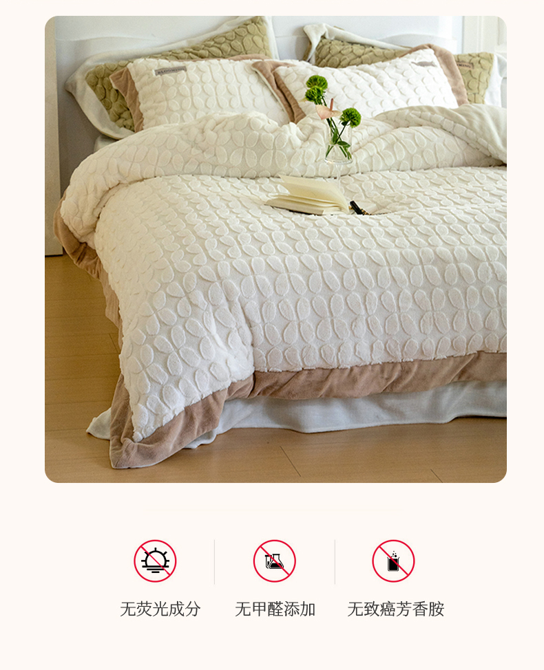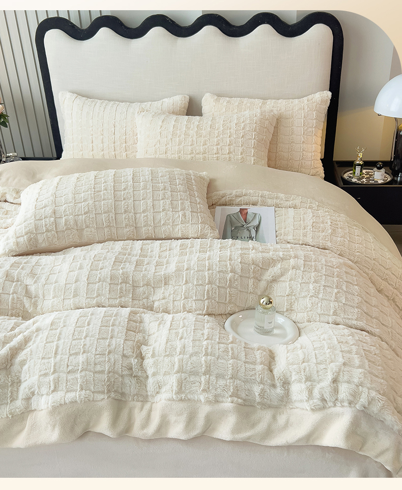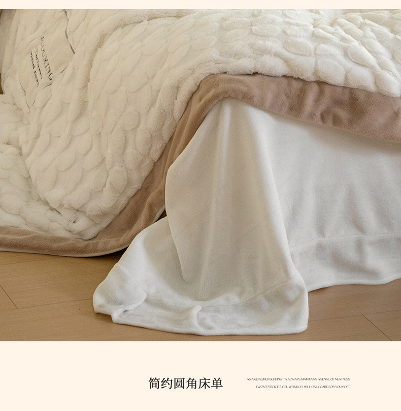 商品名称:名品优仓 2023新款A面兔毛绒B面牛奶绒系列四件套-布兰妮 奶昔白
