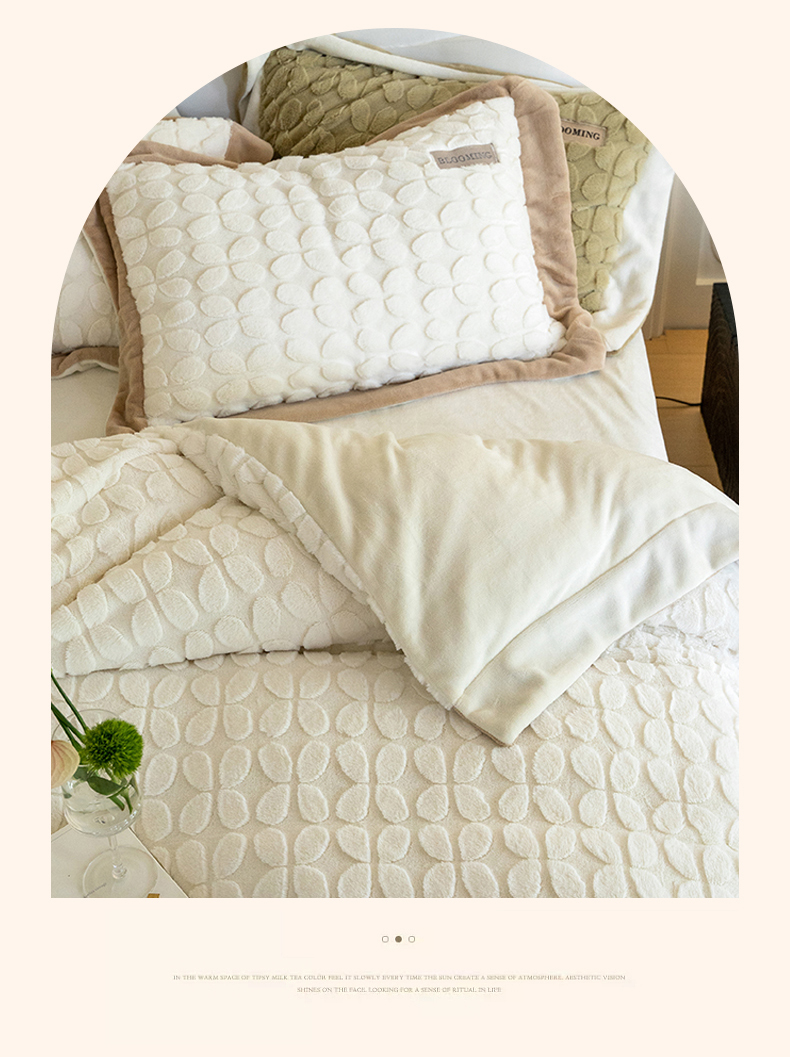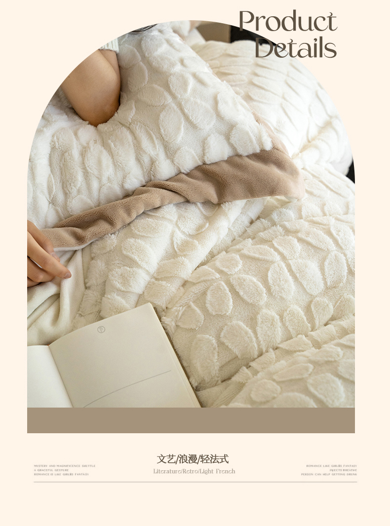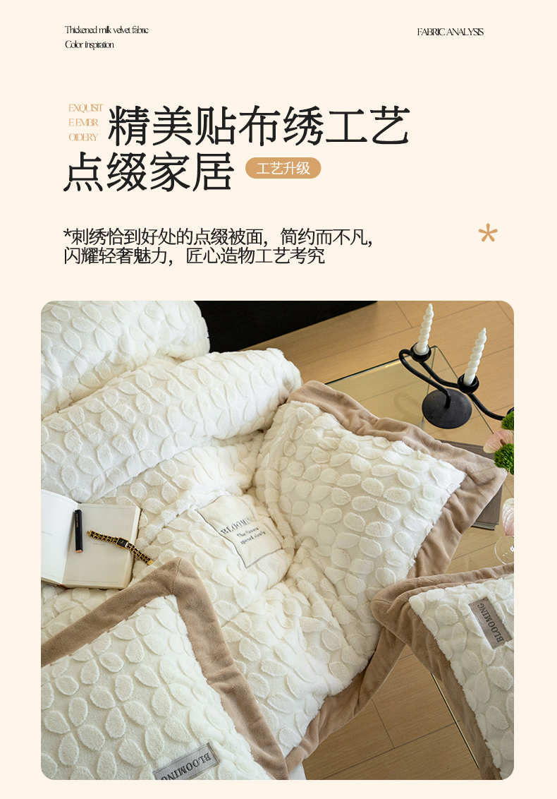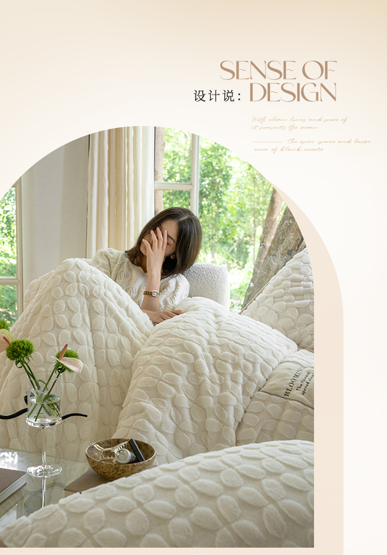 商品名称:名品优仓 2023新款A面兔毛绒B面牛奶绒系列四件套-布兰妮 奶昔白