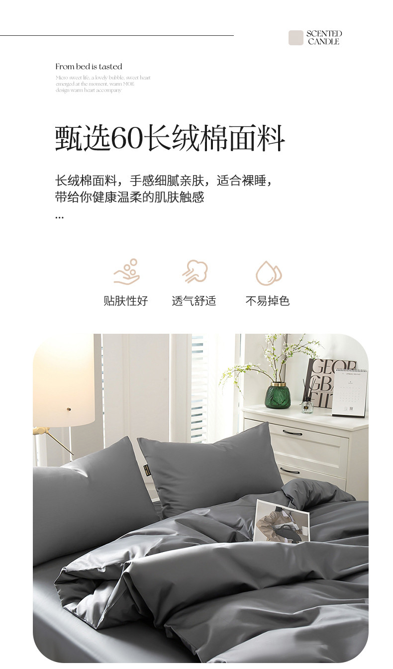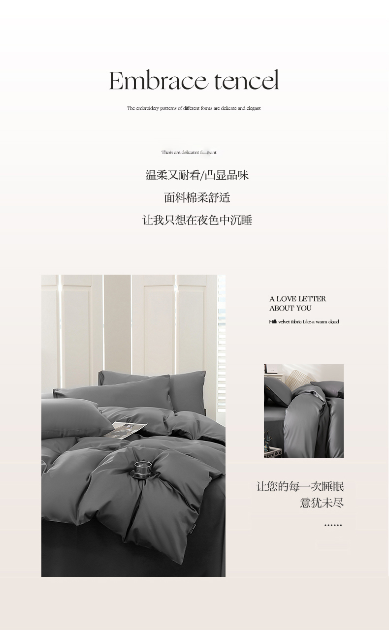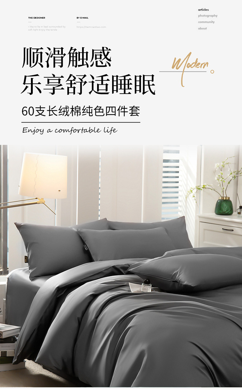 商品名称:莱阁亿 2023新款60支长绒棉纯色四件套 灰色