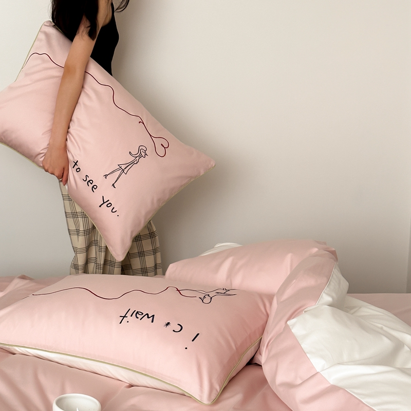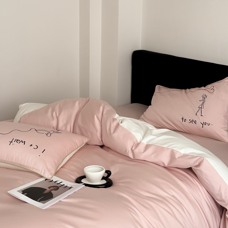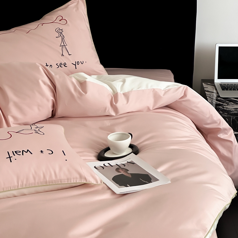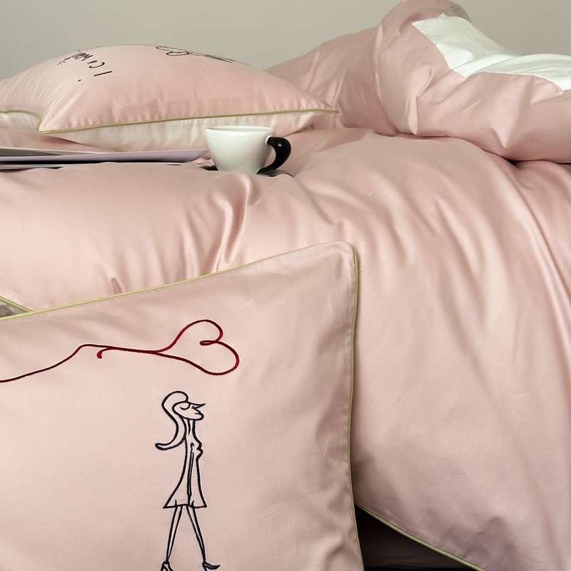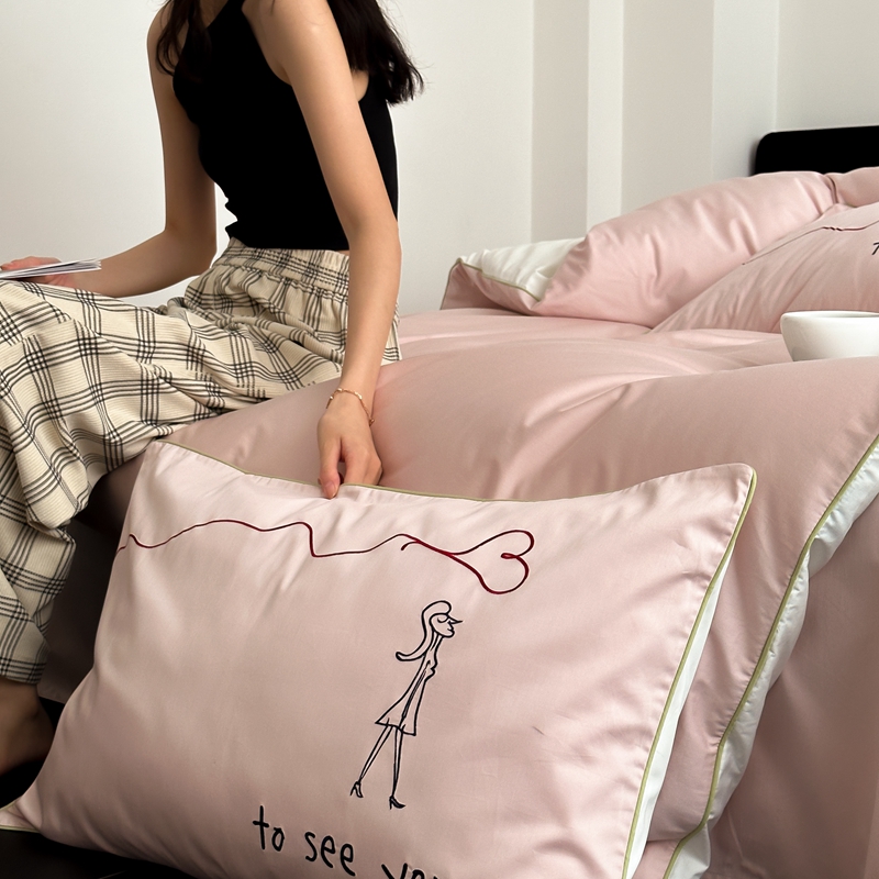 时年 2023新款100支双股澳棉刺绣款四件套 遇见-粉