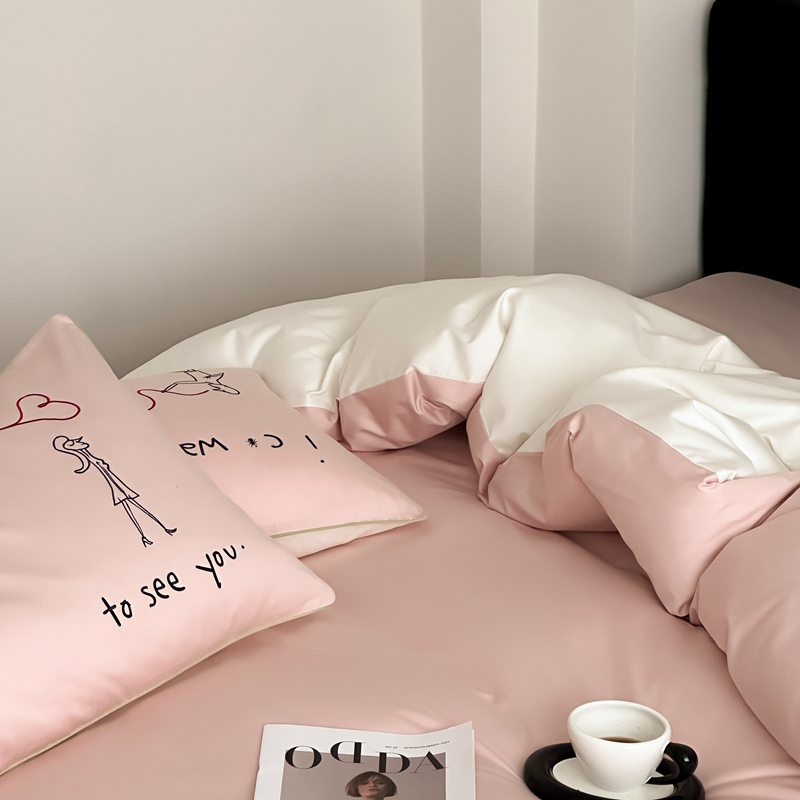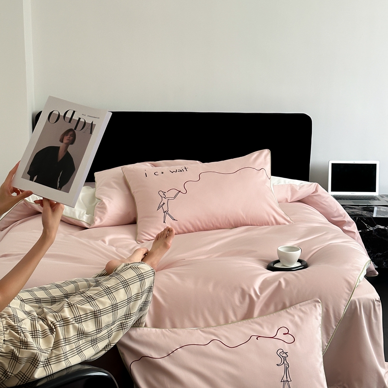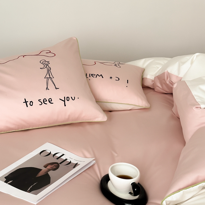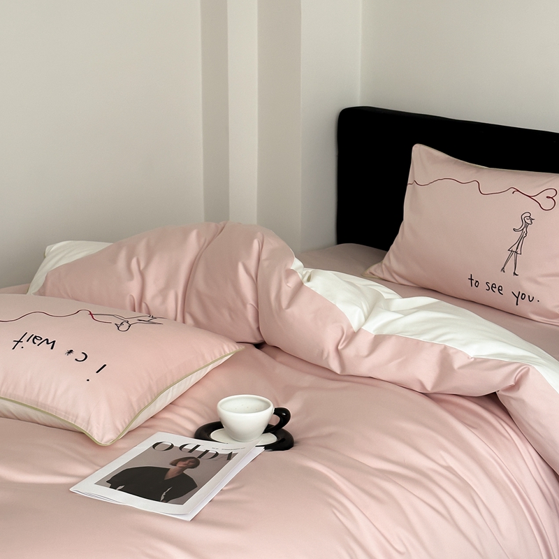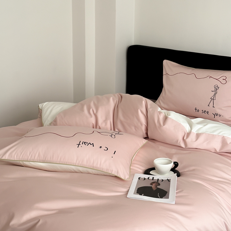 时年 2023新款100支双股澳棉刺绣款四件套 遇见-粉