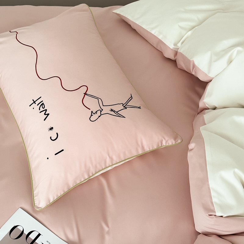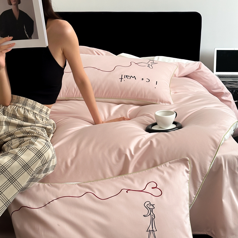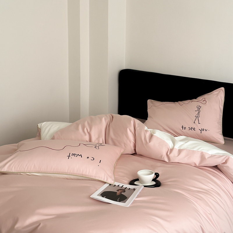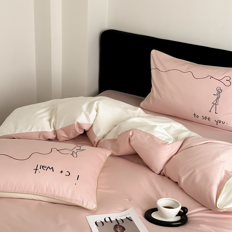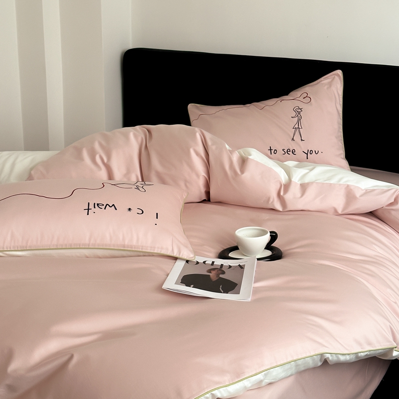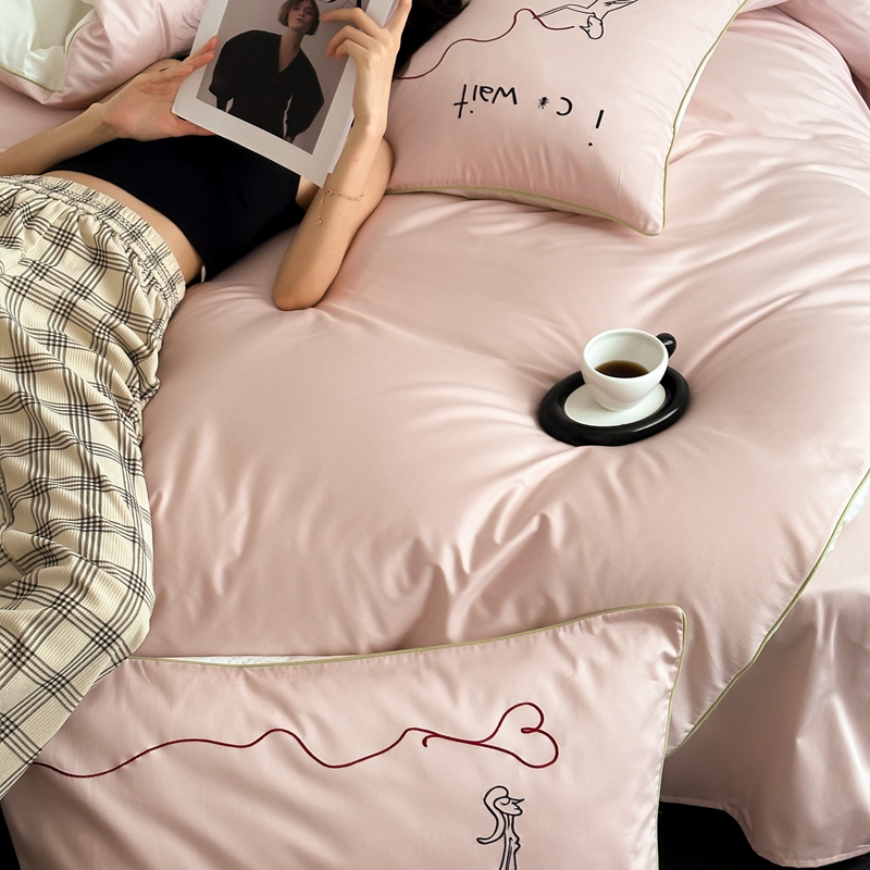 商品名称:时年 2023新款100支双股澳棉刺绣款四件套 遇见-粉