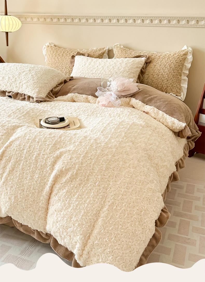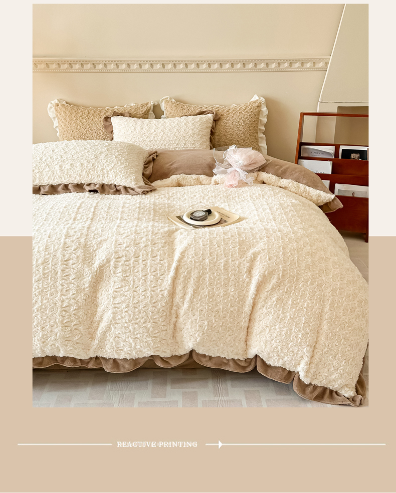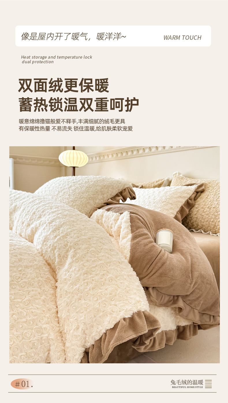 商品名称:米莱家纺 2023新款兔毛四件套 玫瑰花 玫瑰花-咖色