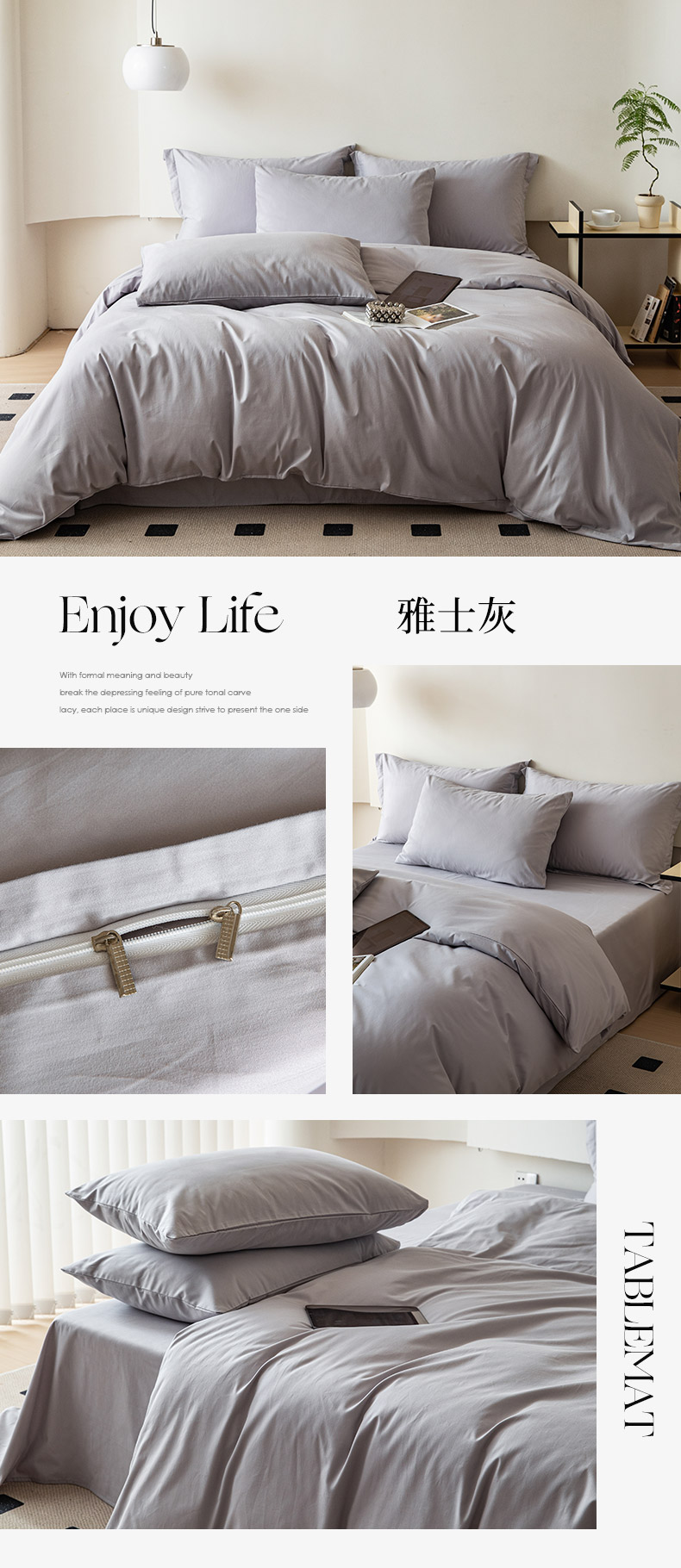 商品名称:怡家居 2023新款全棉100支磨毛纯色四件套 雅士灰