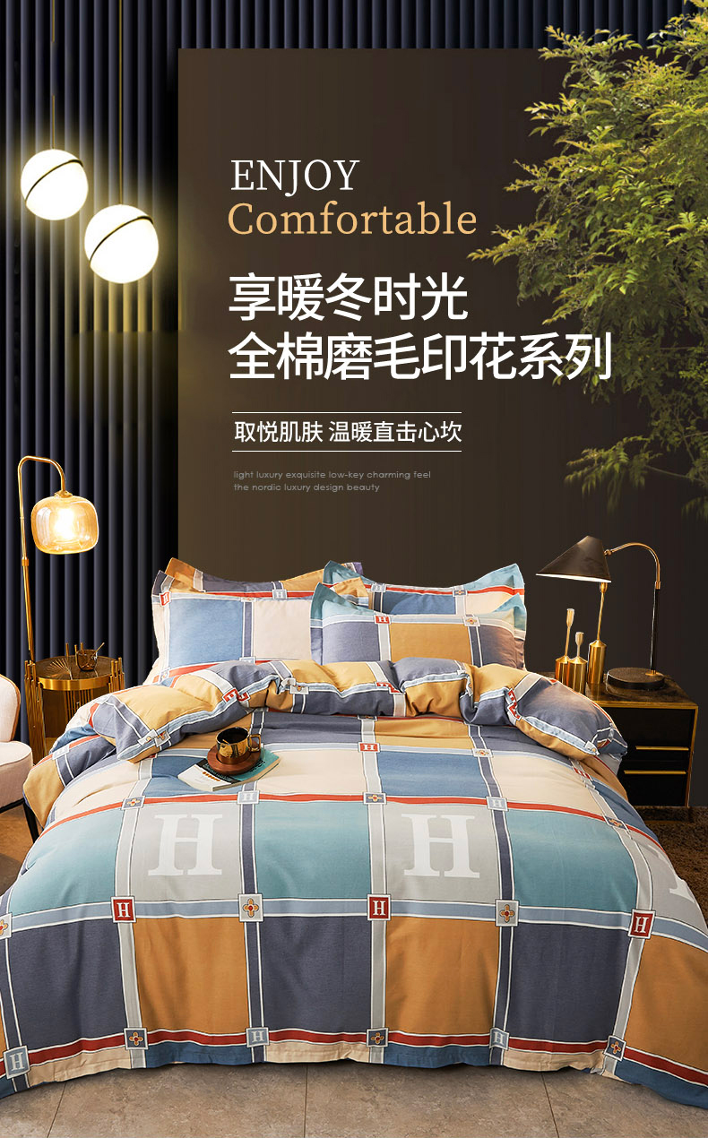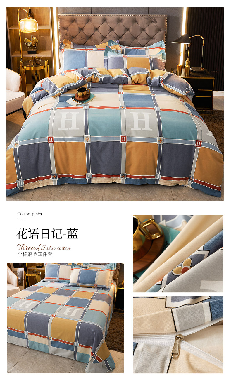 当前位置: 91家纺网 > 商品网购 > 床品套件 > 四件套 > 普通磨毛四件套 > 伊而梦 2023新款全棉磨毛印花四件套系列四件套 花语日记-蓝