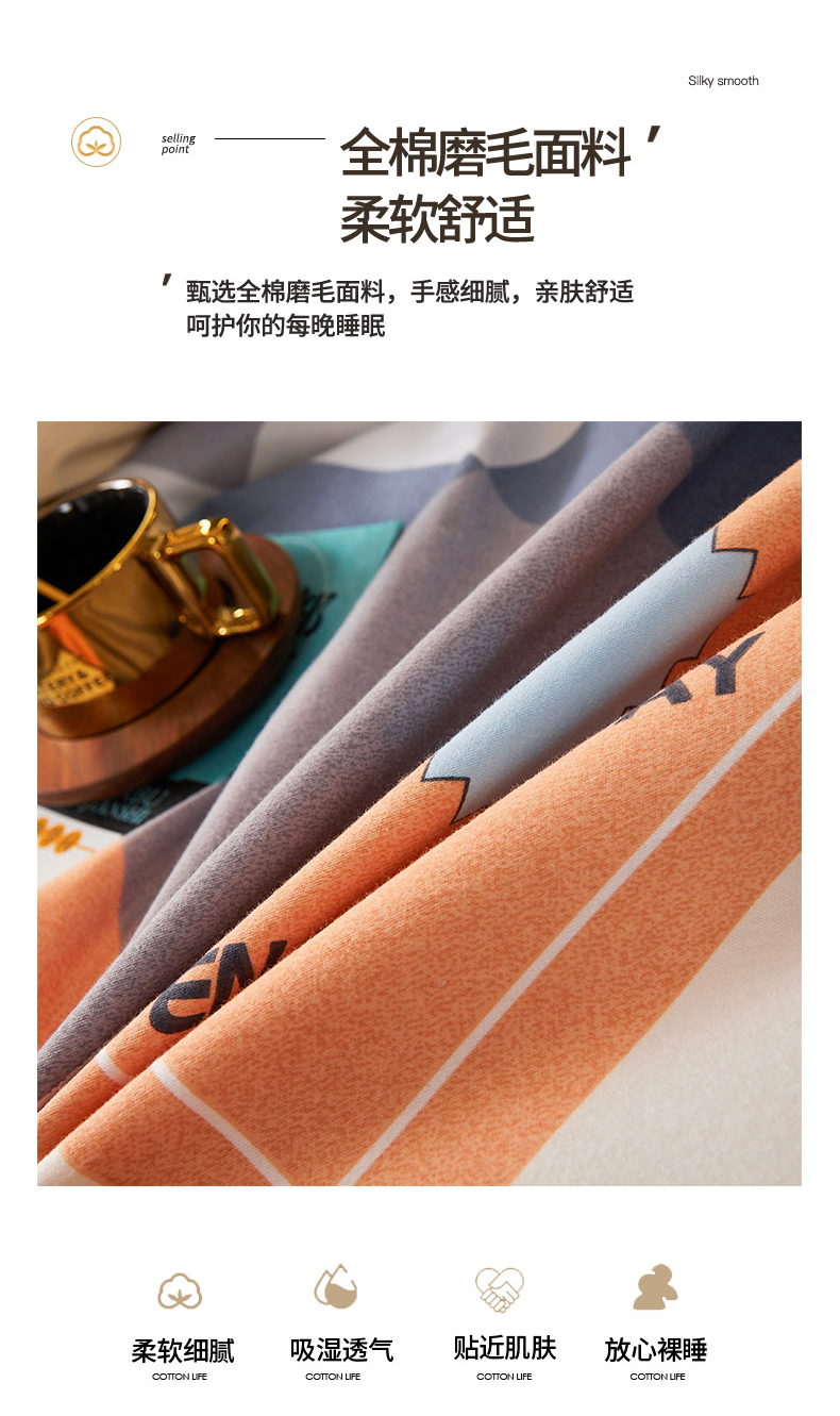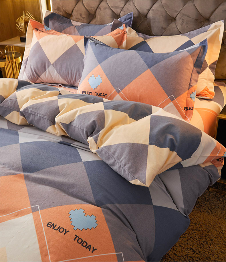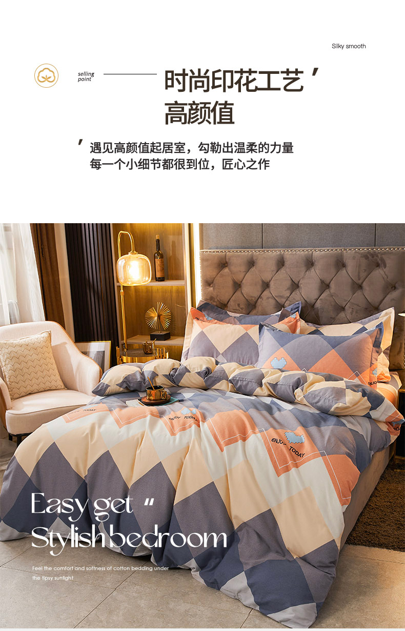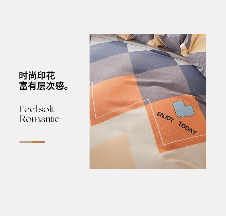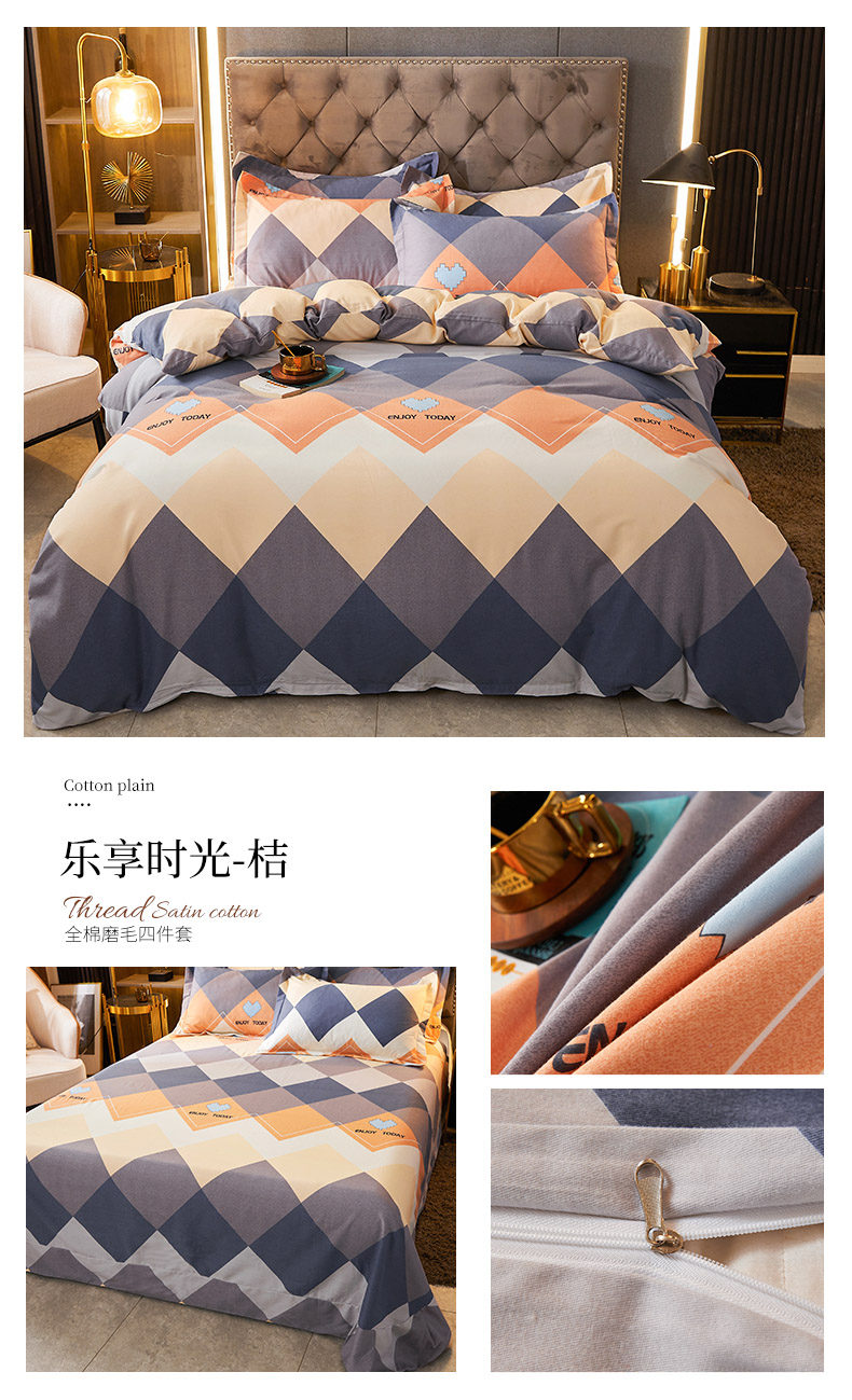 当前位置: 91家纺网 > 商品网购 > 床品套件 > 四件套 > 普通磨毛四件套 > 伊而梦 2023新款全棉磨毛印花四件套系列四件套 乐享时光-桔