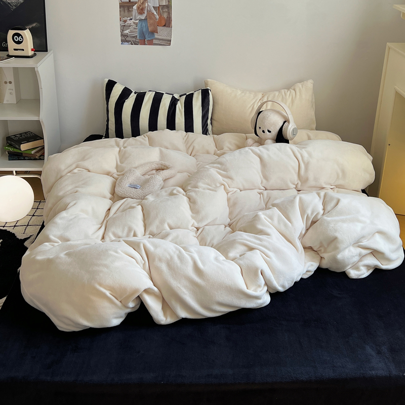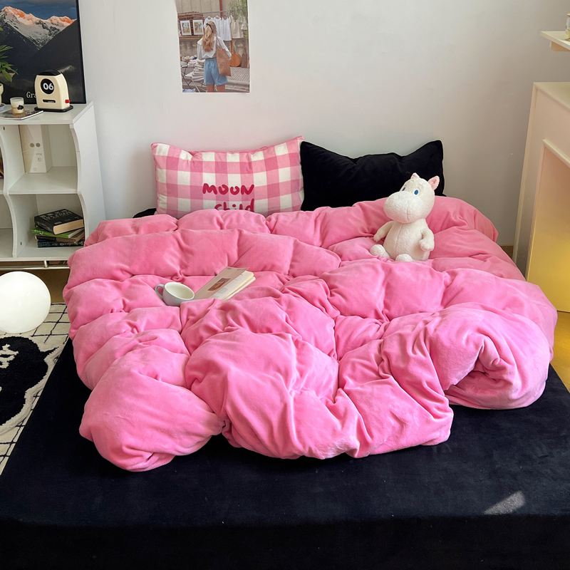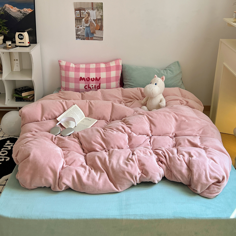 (总)桃喜 2024新款牛奶绒纯色混搭系列四件套