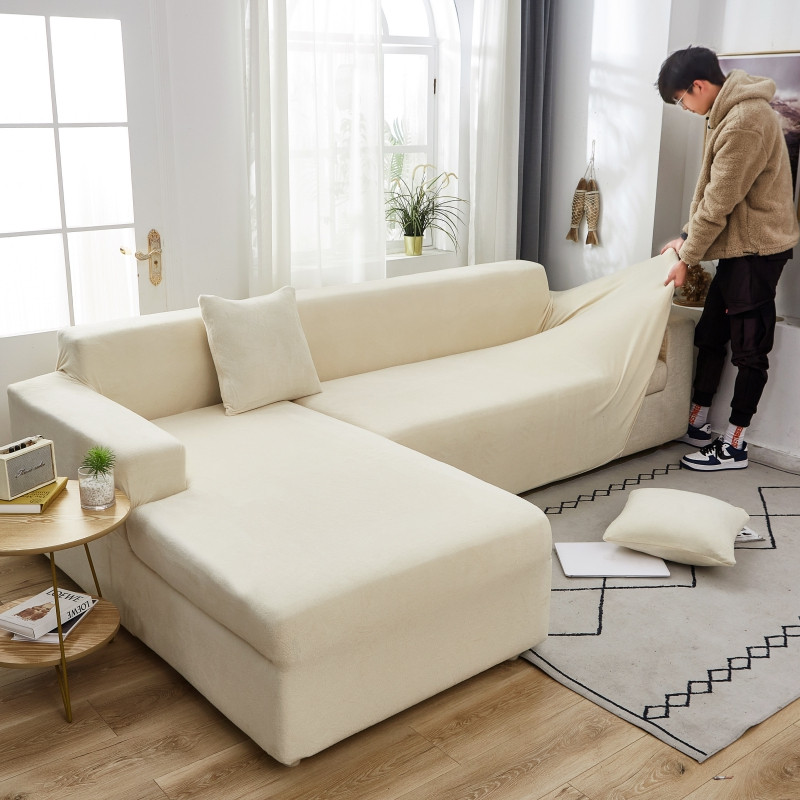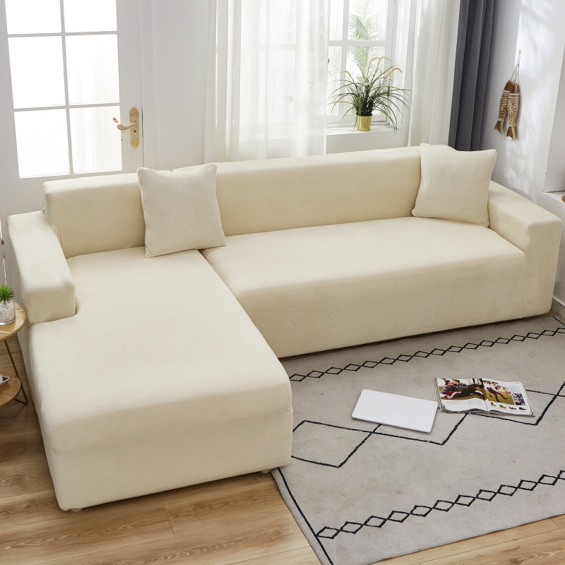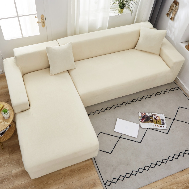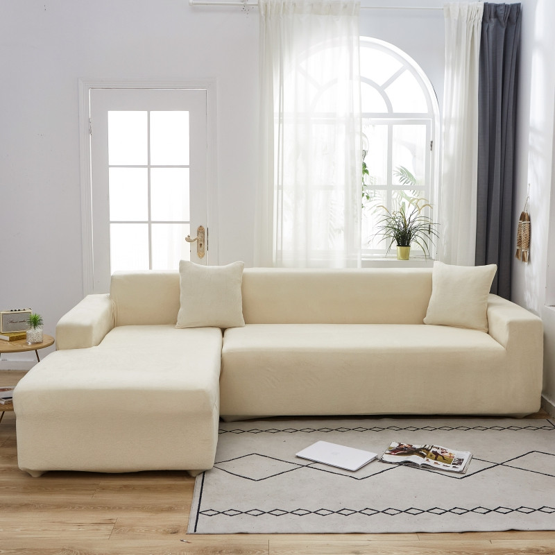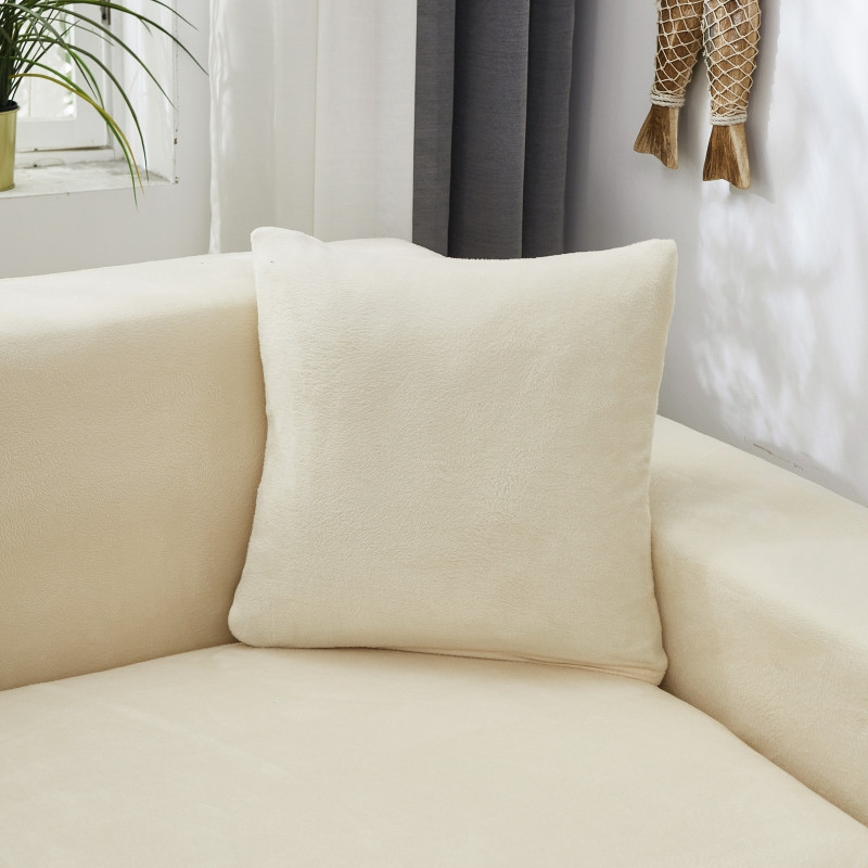 丝绮鹿 2023新款毛绒纯色沙发套贵妃位图 米白-毛绒款