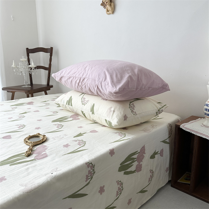 (总)恋恋三季 2024新款纯棉印花韩式田园枕套-格子铃兰,格子铃兰一只,香芋紫一只