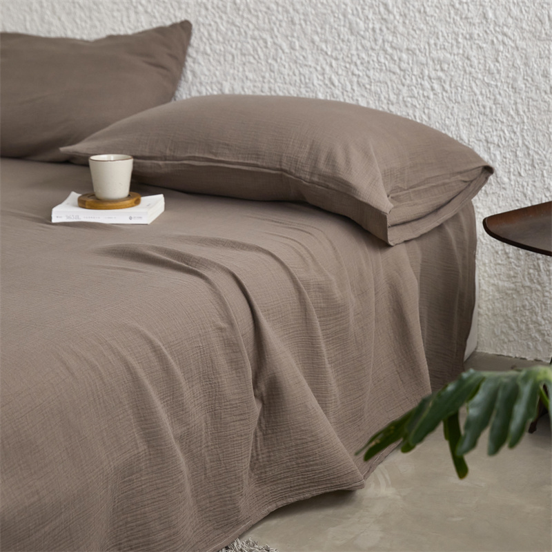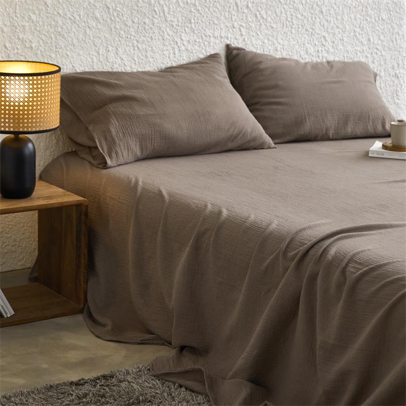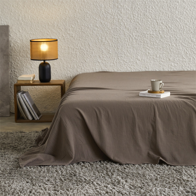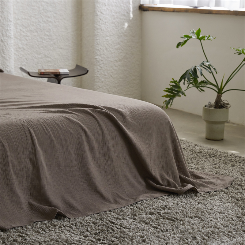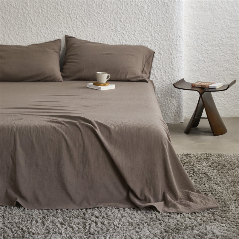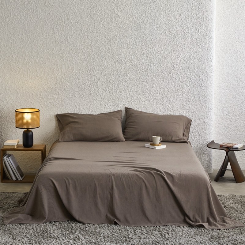 安莱生活2024新款绉纱美拉德色纯色单品床单 糖棕