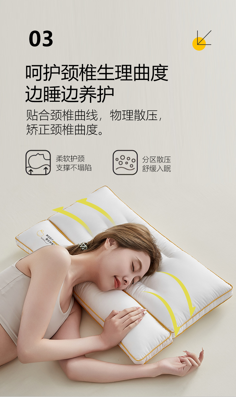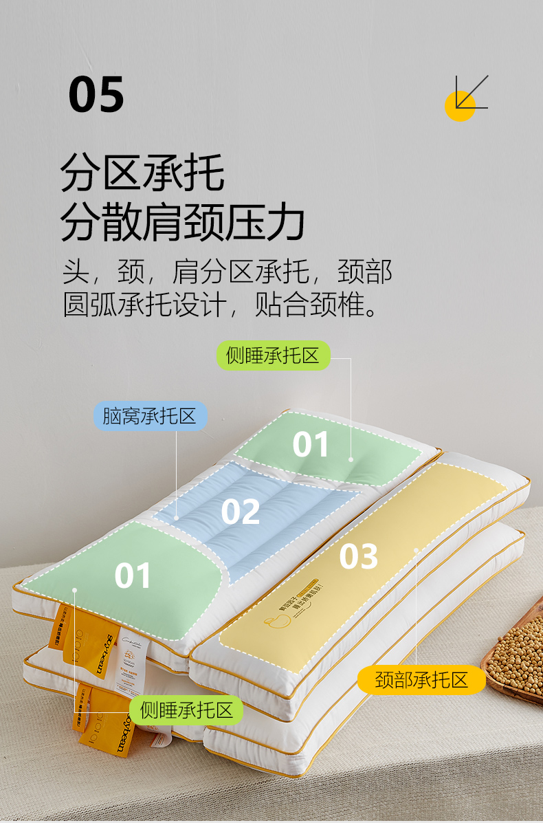 (总)乐可 2025新款分区两用牵引枕全棉双向枕 枕头枕芯,分区两用牵引枕