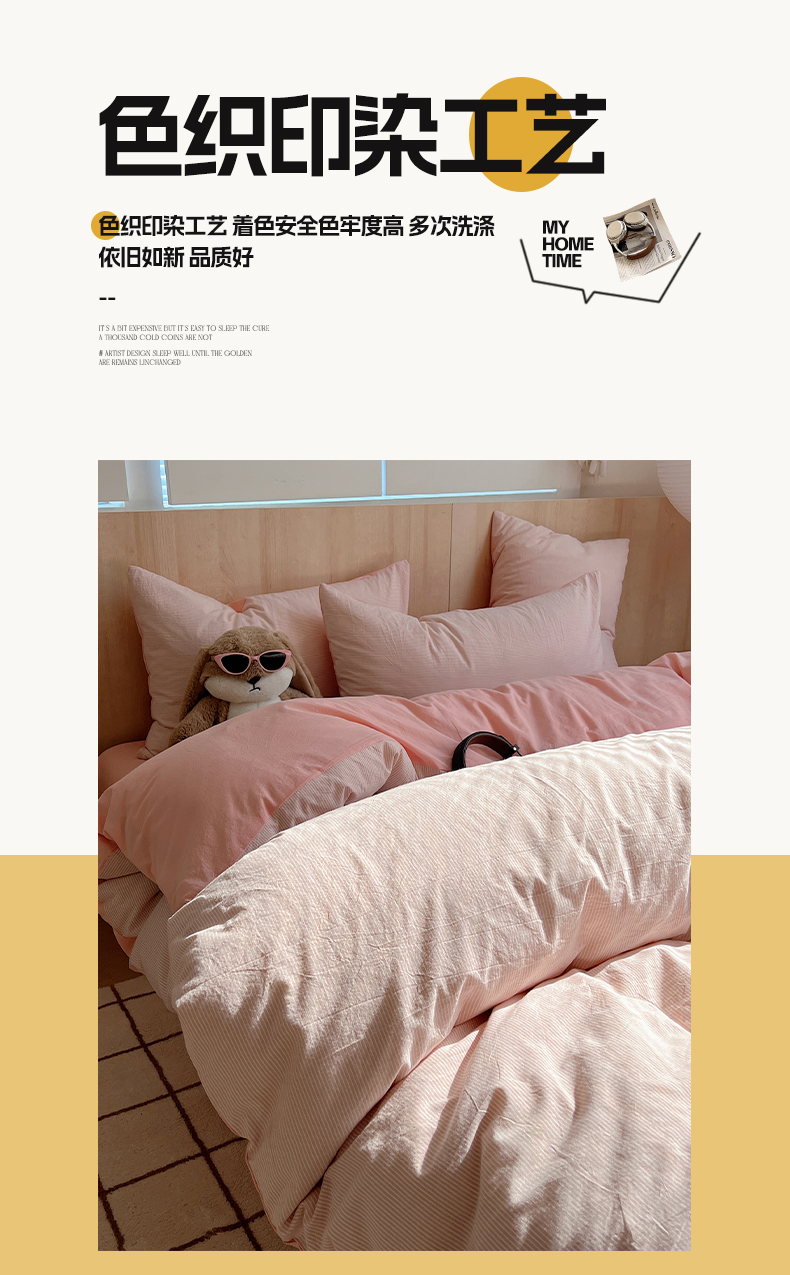 商品名称:雅居纺家纺 2024新款色织水洗棉四件套 细条粉