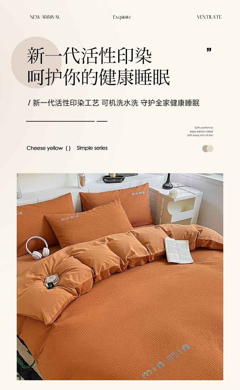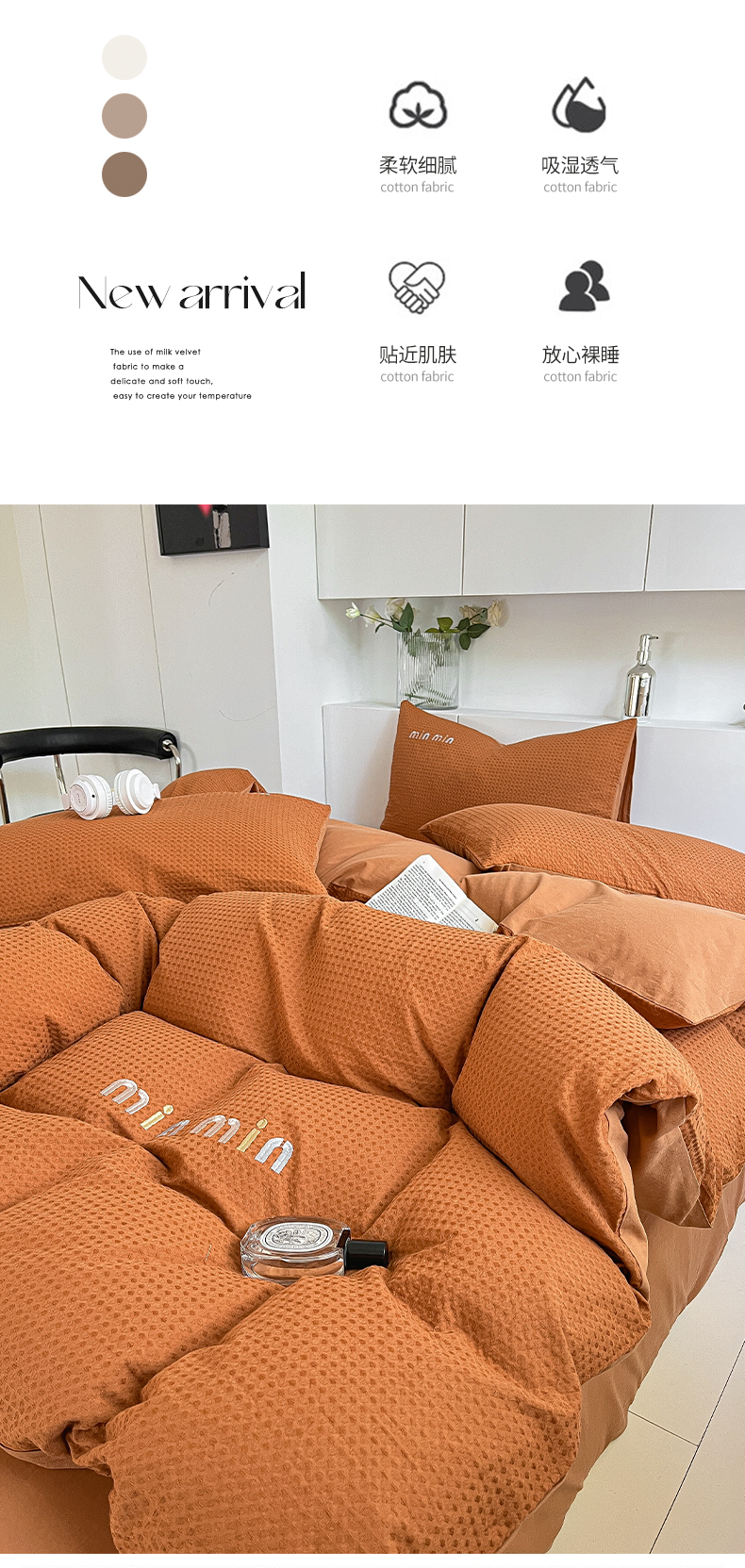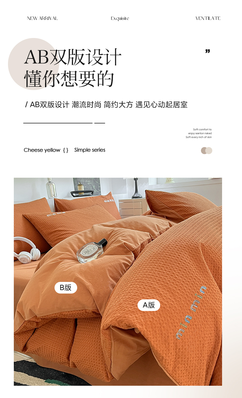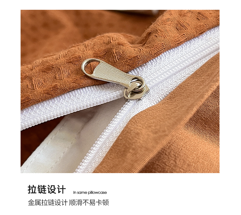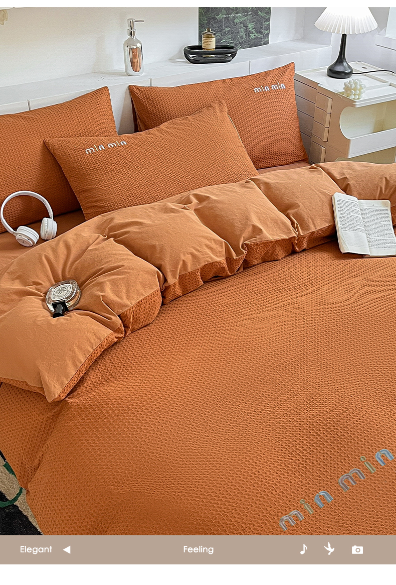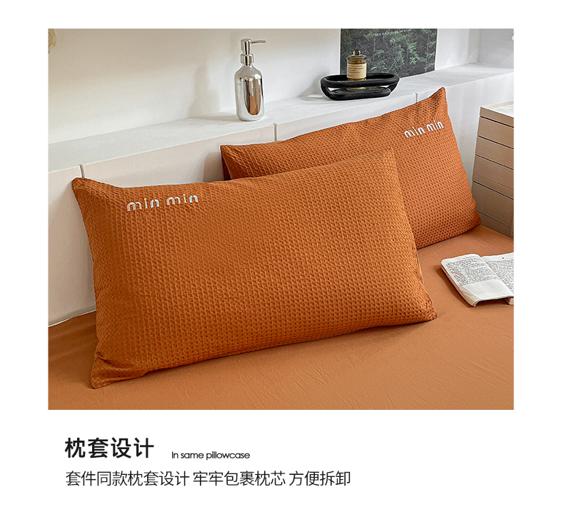 商品名称:雅居纺家纺 2024新款全棉华夫格绣花四件套 Min-焦糖