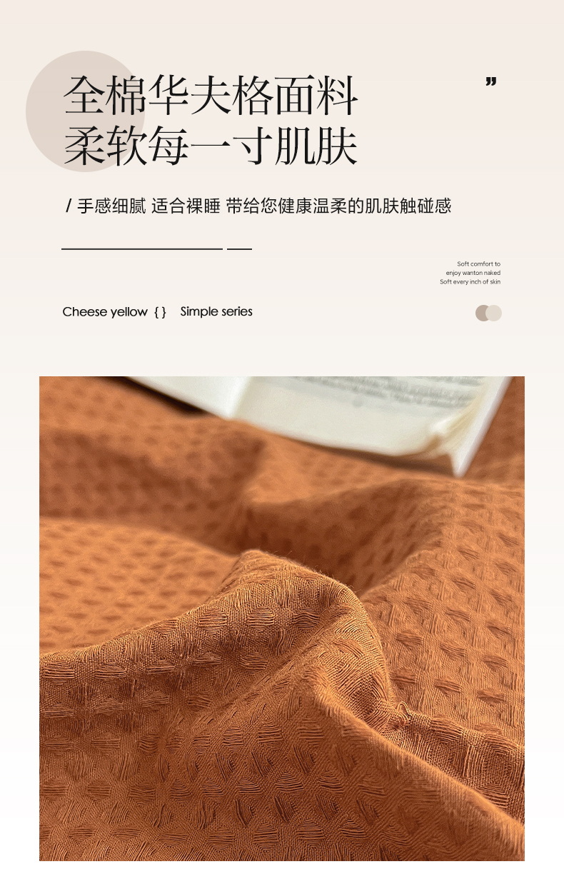 (总)雅居纺家纺 2022新款全棉华夫格普通款四件套,焦糖,米驼,奶油白,柔粉,深灰,雾蓝,月灰