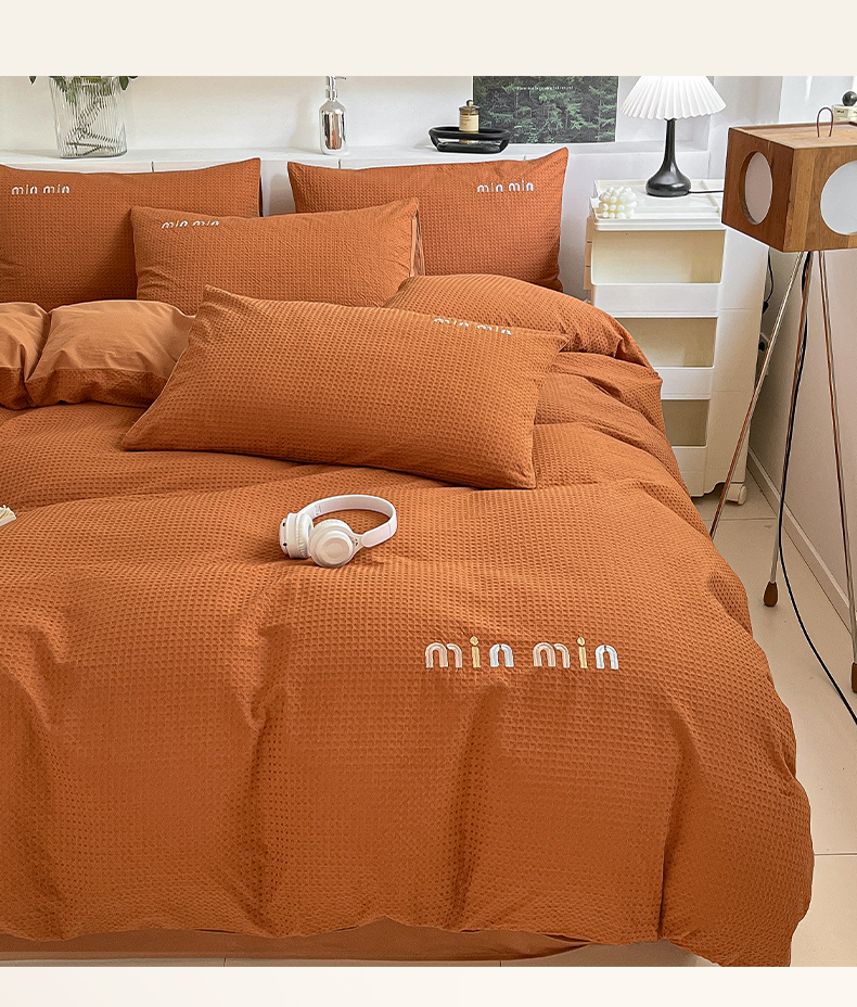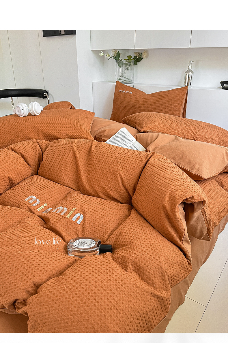 雅居纺家纺 2024新款全棉华夫格绣花四件套 Min-焦糖