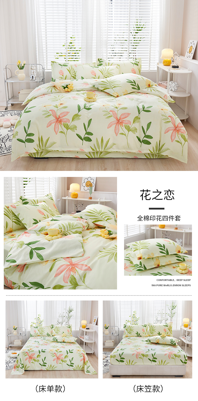 当前位置: 91家纺网 > 商品网购 > 床品套件 > 四件套 > 全棉普通四件套 > 名优家纺 2024新款13070套件系列 全棉印花四件套 花之恋