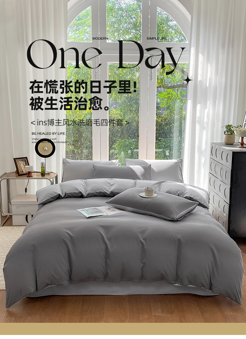 (总)安力森/诚臻酒店用品酒店用品 2025新款ins博主风水洗棉磨毛双拼四件套