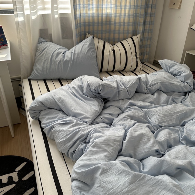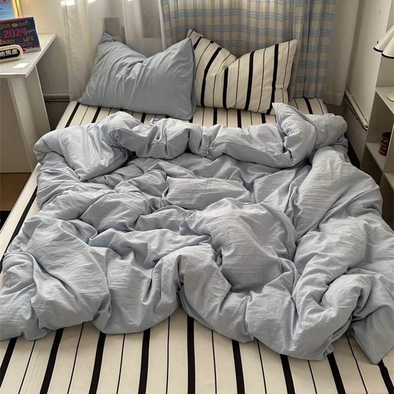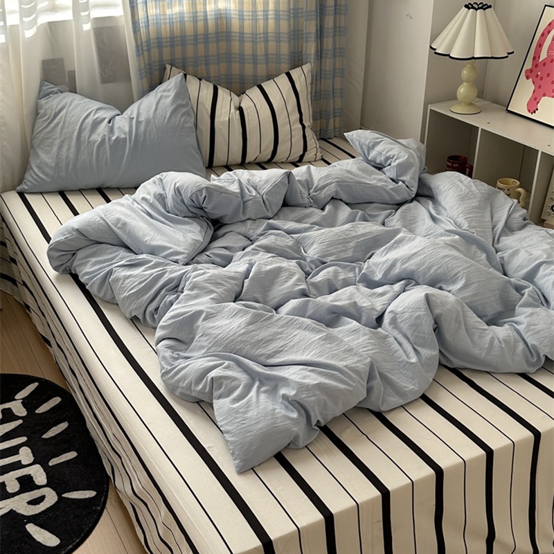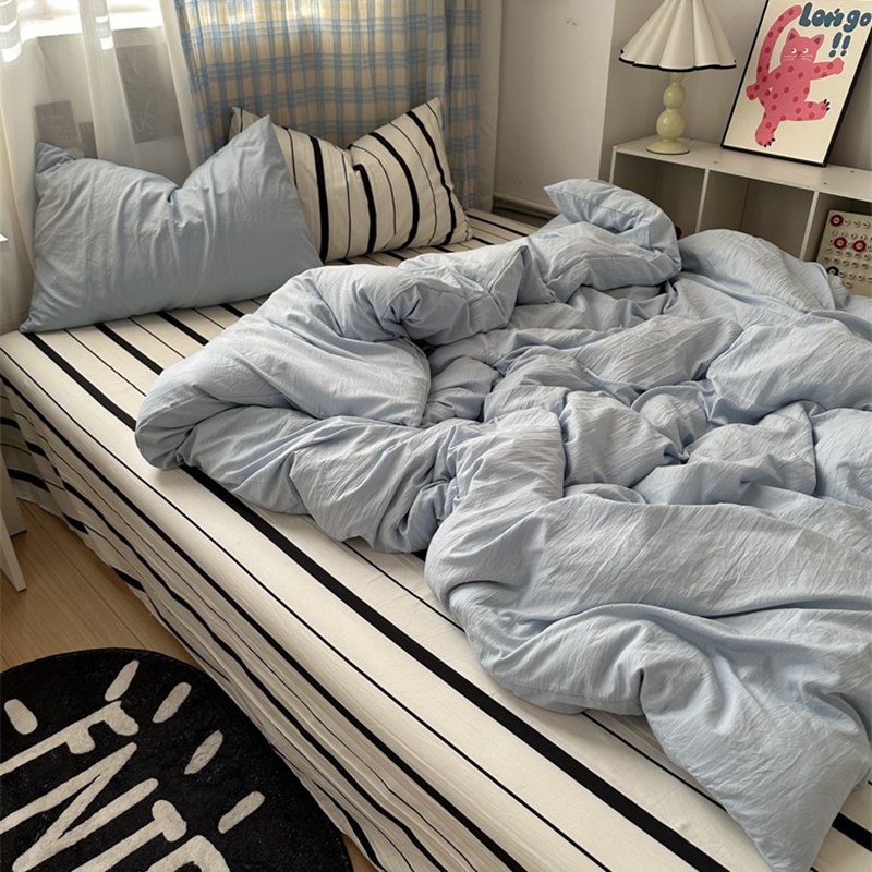 当前位置: 91家纺网 > 商品网购 > 床品套件 > 四件套 > 水洗棉四件套 > 奈颜 2024新款水洗双层纱爆款双拼条纹四件套(实拍图) 浅雾蓝+条纹