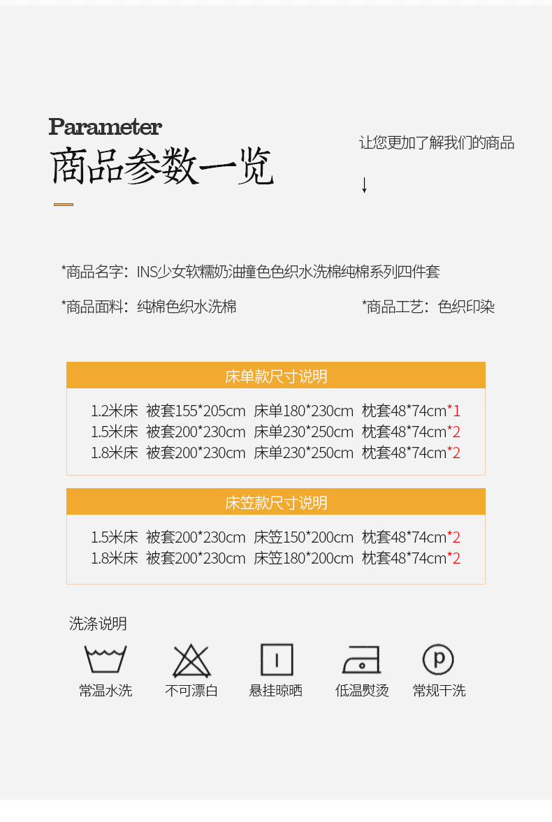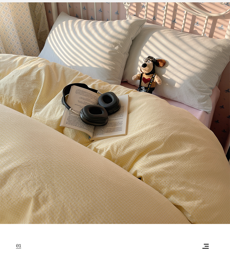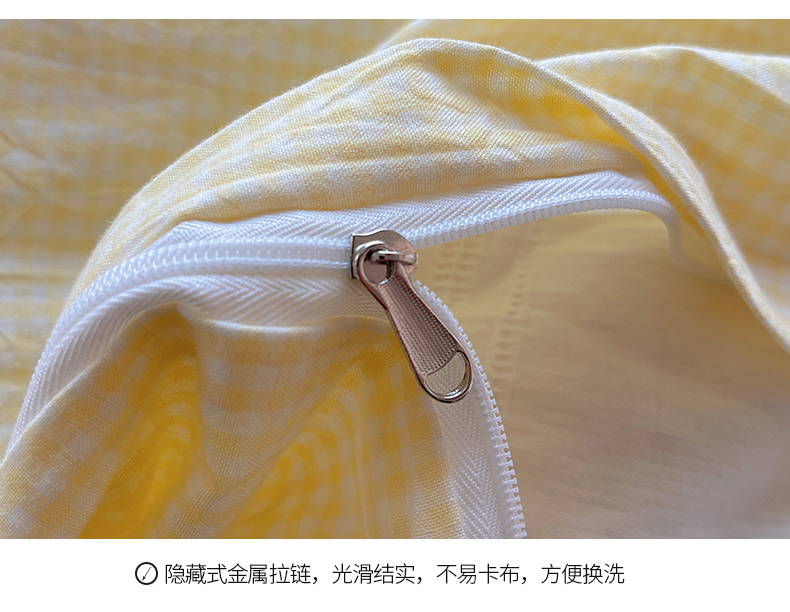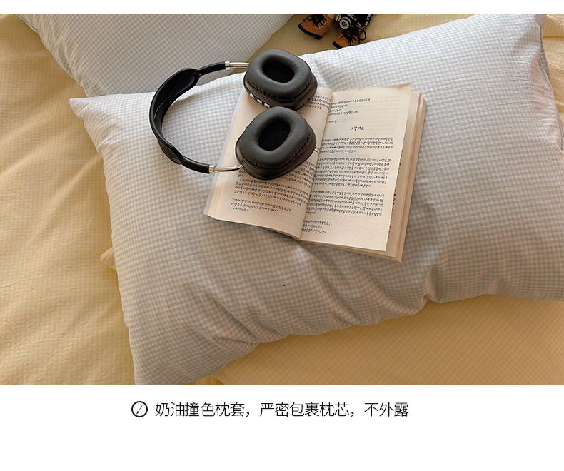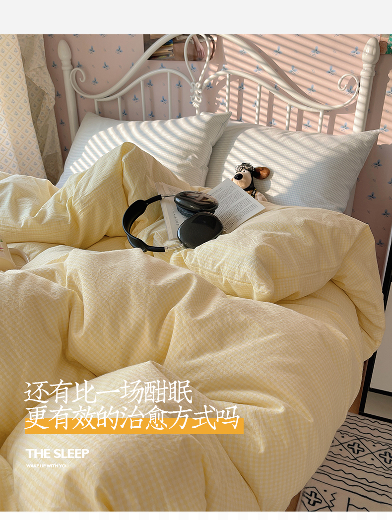 商品名称:桃子家居 2024新款ins少女软糯奶油撞色色织水洗棉纯棉系列四件套 水洗棉-色织小黄格