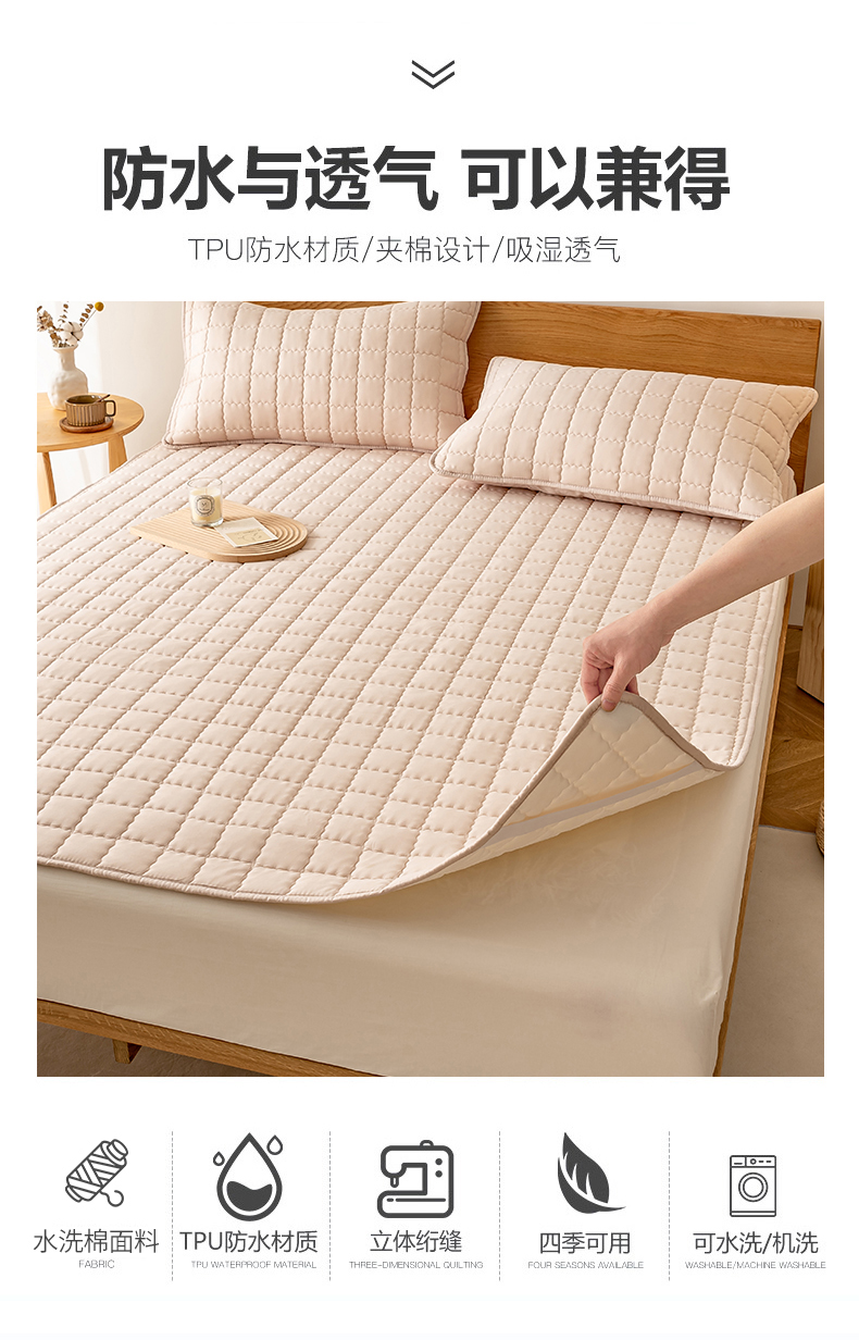 商品名称:花言狐语 2025新款A类原棉防水防污床垫-艾薇格系列 艾薇格-卡其