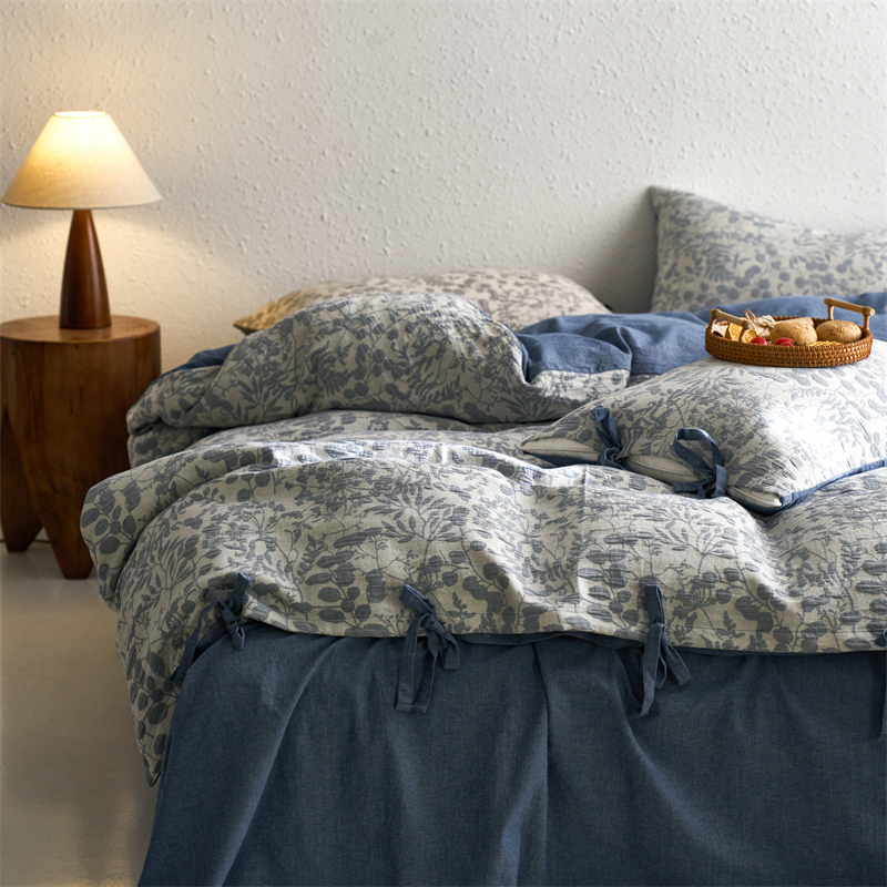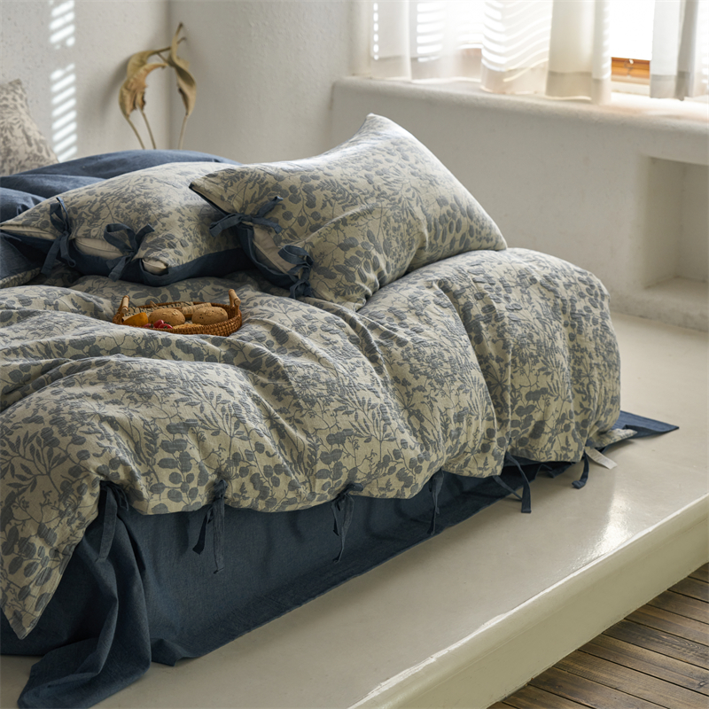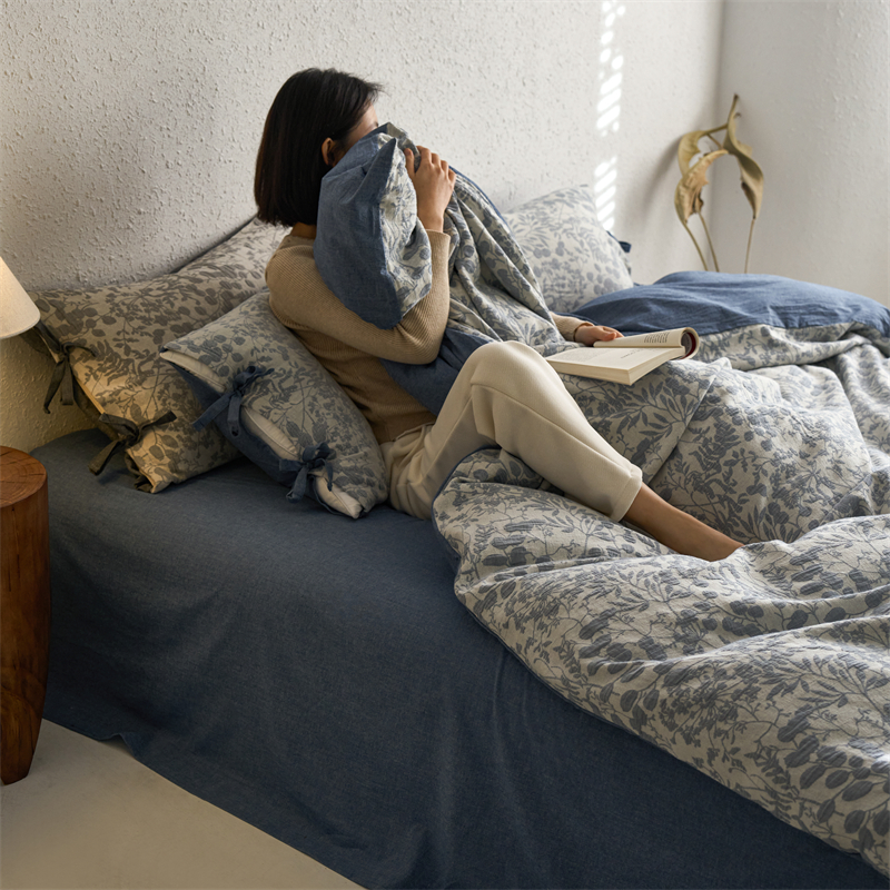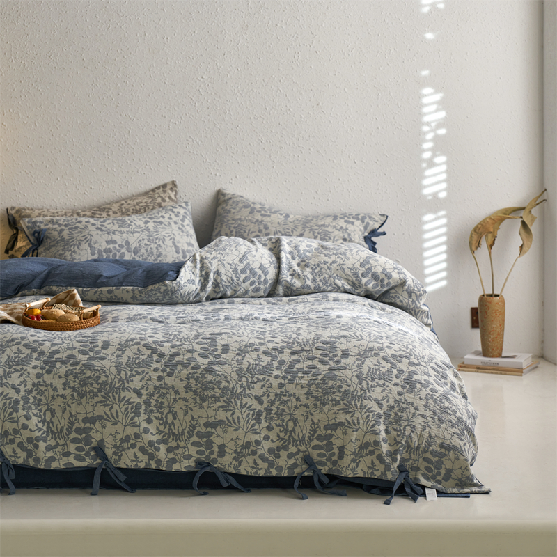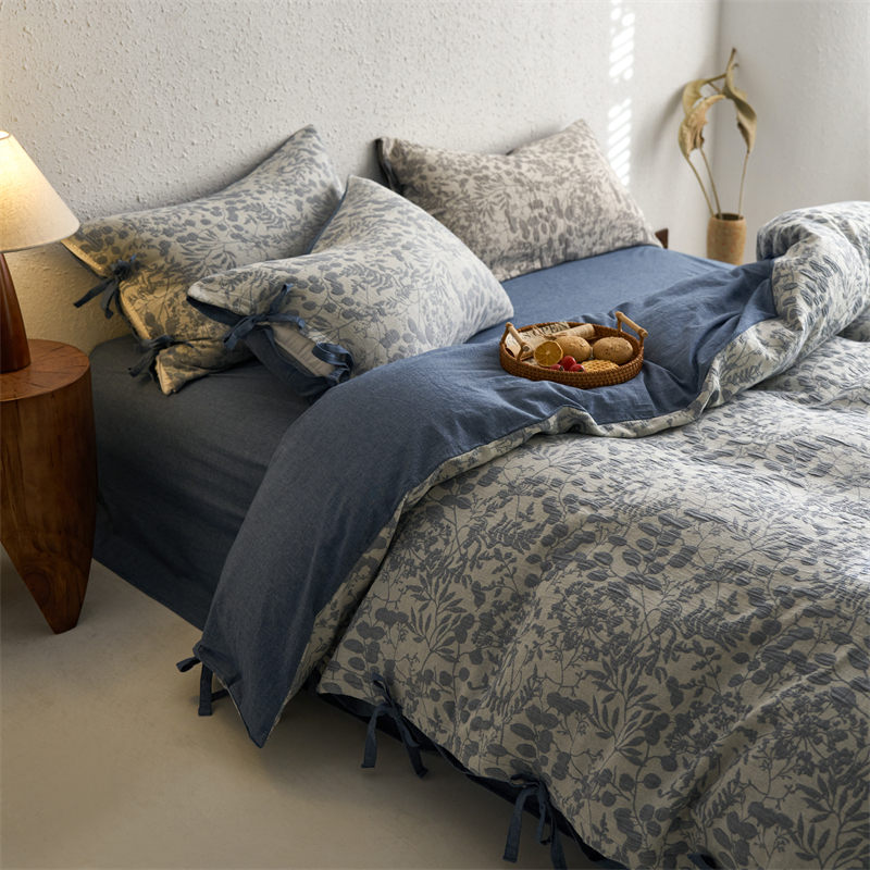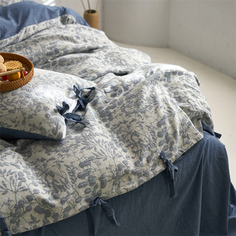 当前位置: 91家纺网 > 商品网购 > 床品套件 > 四件套 > 色织四件套 > 安莱生活 2024新款高端双层纱栀子花色织大提花蝴蝶结工艺款四件套 栀子花-深蓝