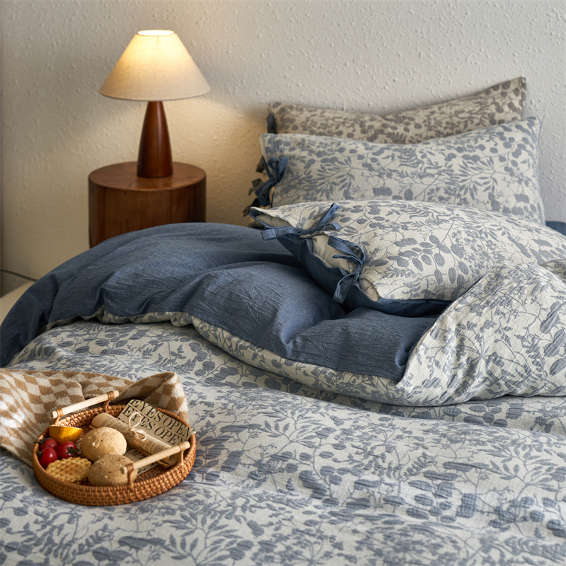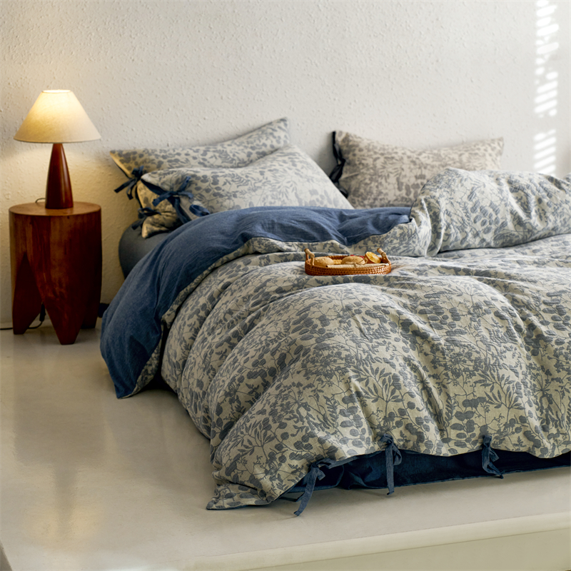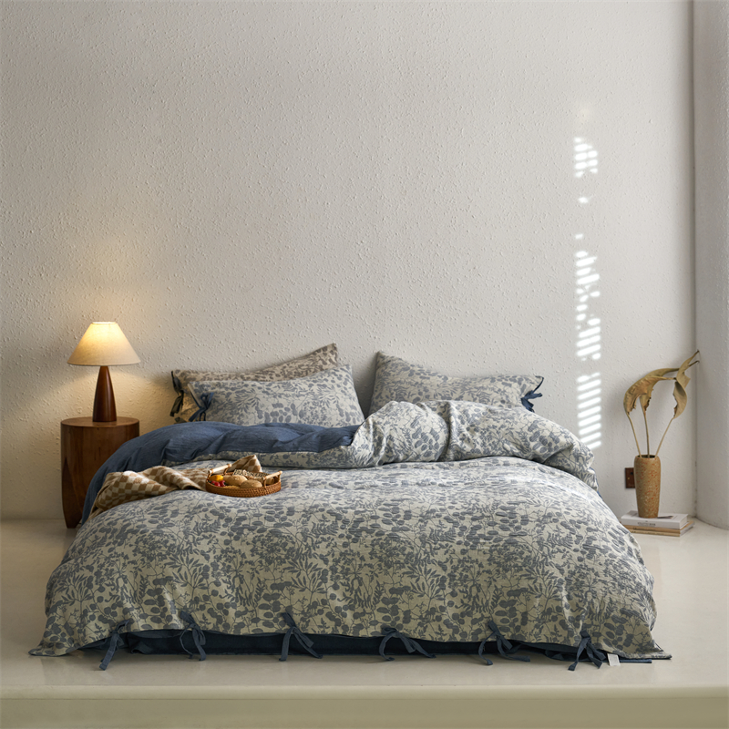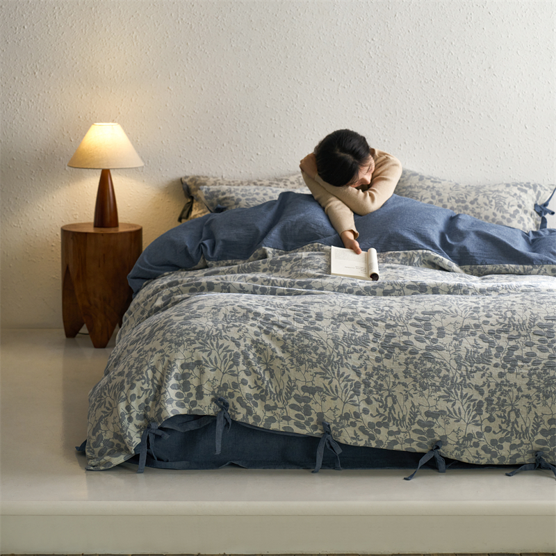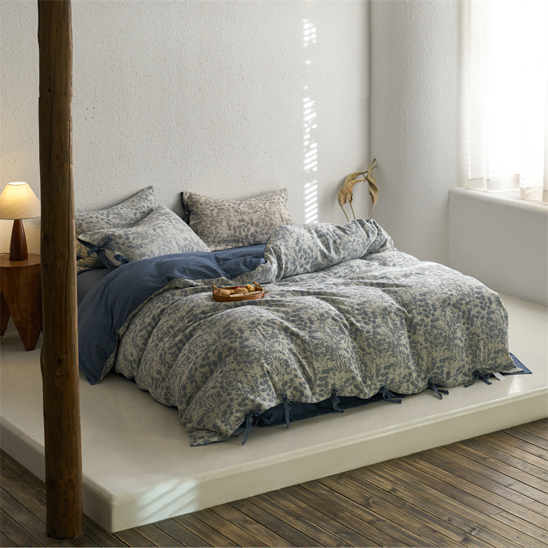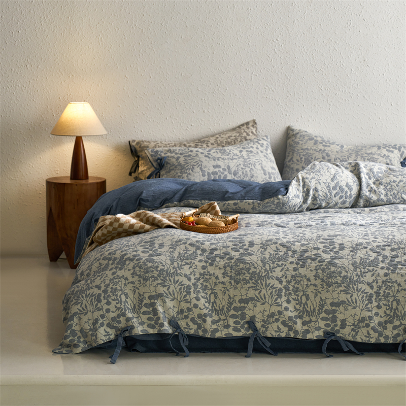 当前位置: 91家纺网 > 商品网购 > 床品套件 > 四件套 > 色织四件套 > 安莱生活 2024新款高端双层纱栀子花色织大提花蝴蝶结工艺款四件套 栀子花-深蓝