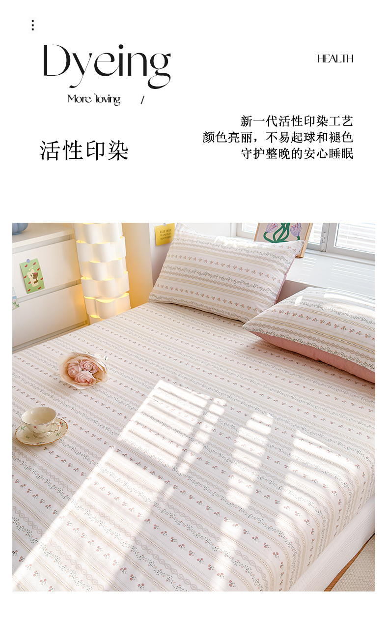 清雅福 2024新款全棉13372小清新单床笠 樱桃花